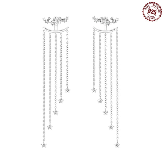 925 pure silver Purple Star Shining 1 pair of 2-wear fringed stud earrings, elegant and high-quality women's earrings, suitable