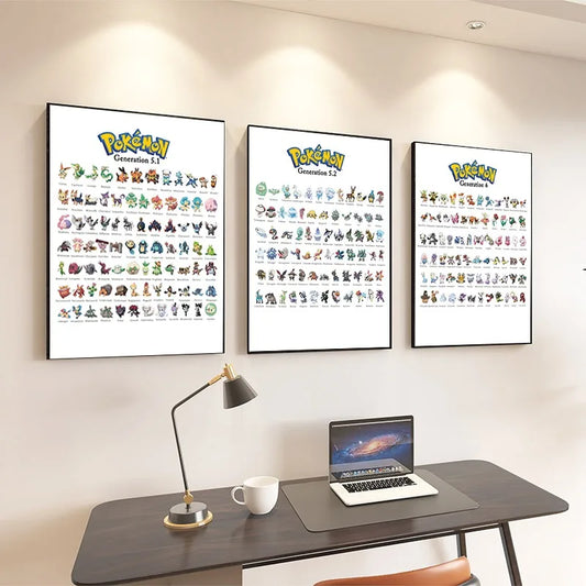 French version Classic Anime Pokemon Peripherals Kawaii Pikachu Poster Decoration Art Watercolor Pictures Canvas Painting