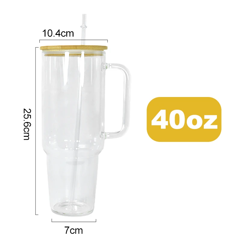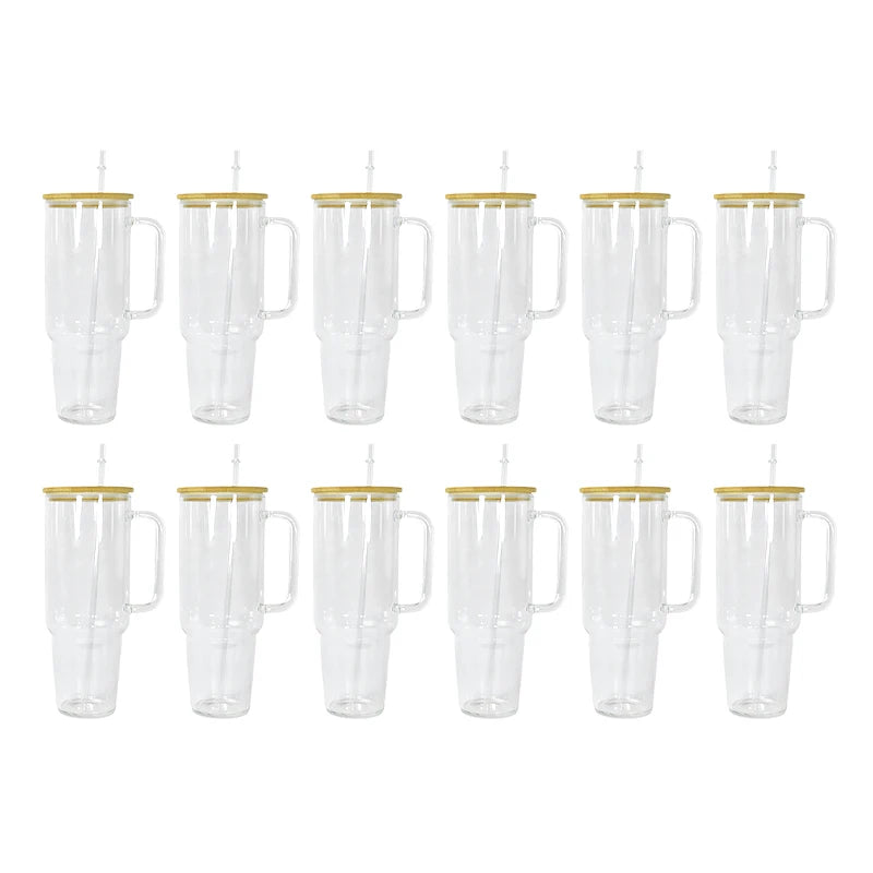 12pcs 40oz Clear Glass Sublimation Coffee Tumbler Travel Glass Mug With Handle Hu