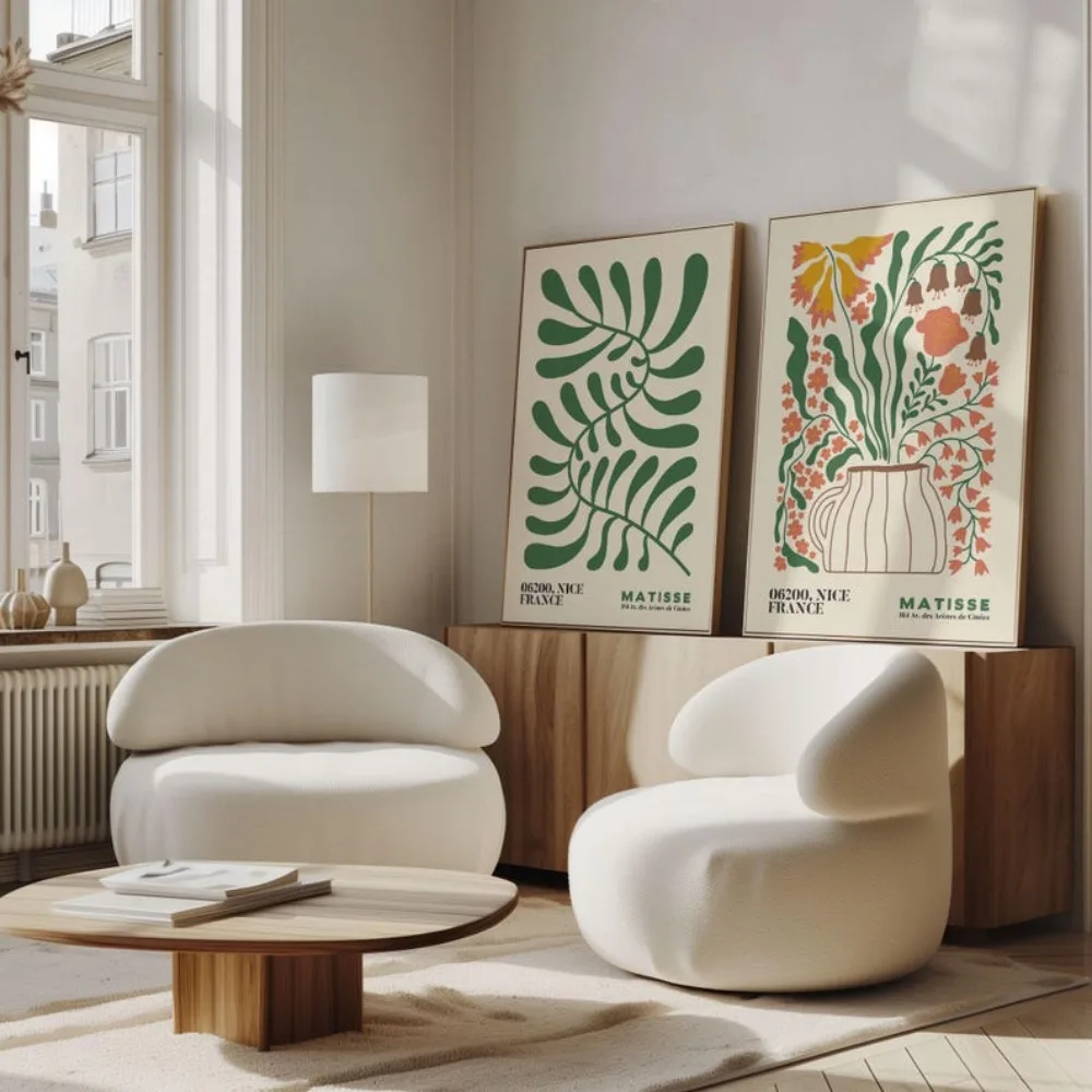 2 Frameless Matisse Flowers,Bohemian Floral Art,Bedroom Wall Decor,Living Room Prints,Exhibition Mid-century Modern Art Prints