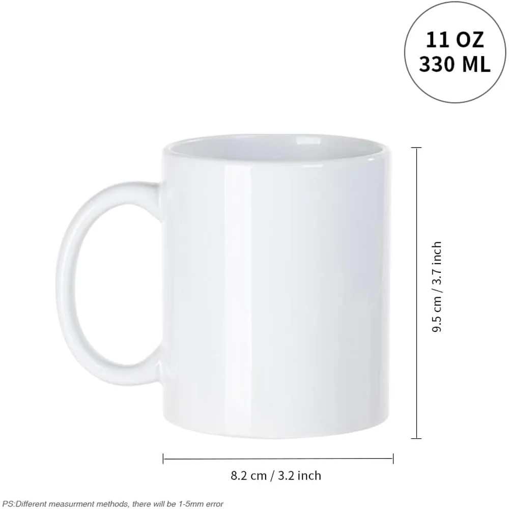 Quality Sublimation Coating:The plain blank white coffee mugs are ready for sublimation,with quality sublimation coating,the print color come out bright not foggy.