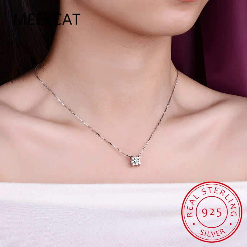 925 Sterling Silver 2ct Moissanite Diamond Necklace VVS1 D Color Pendant Necklace Wedding Jewelry for Women Girls Gift
