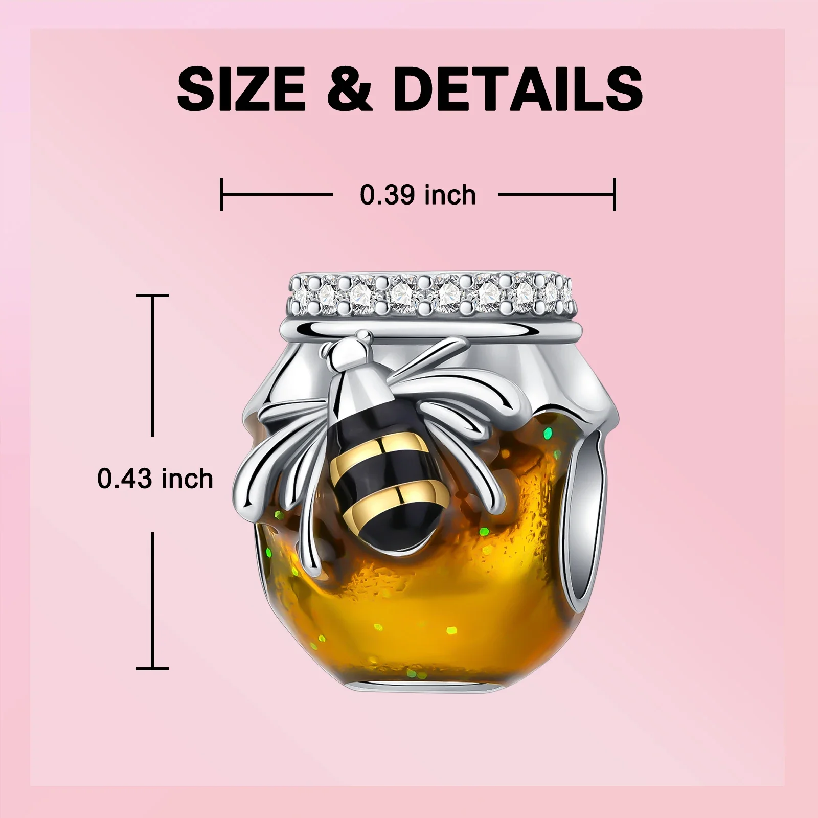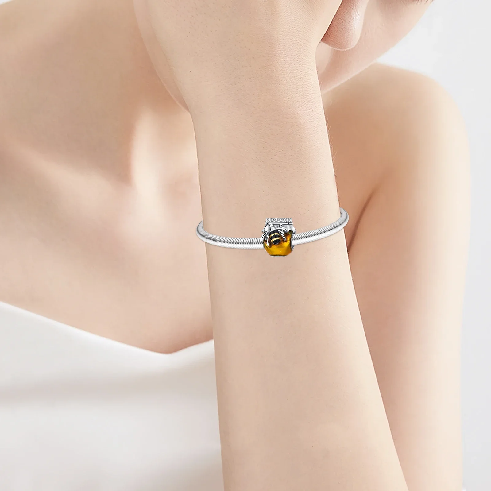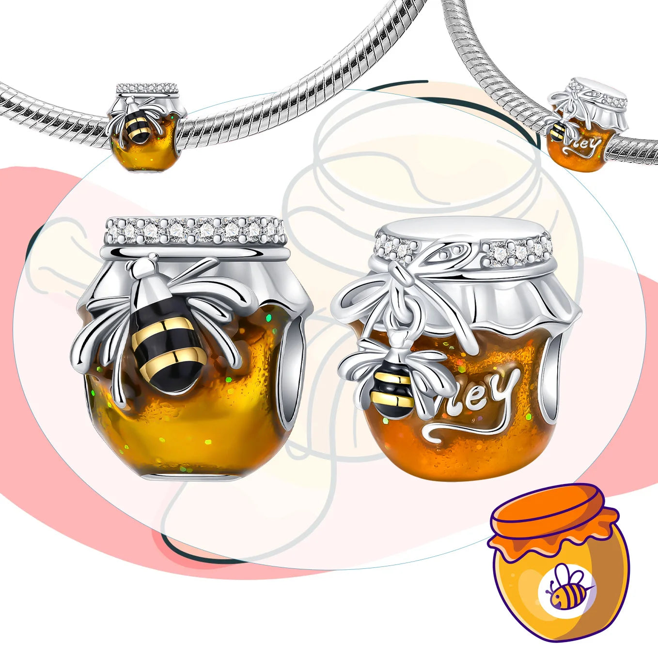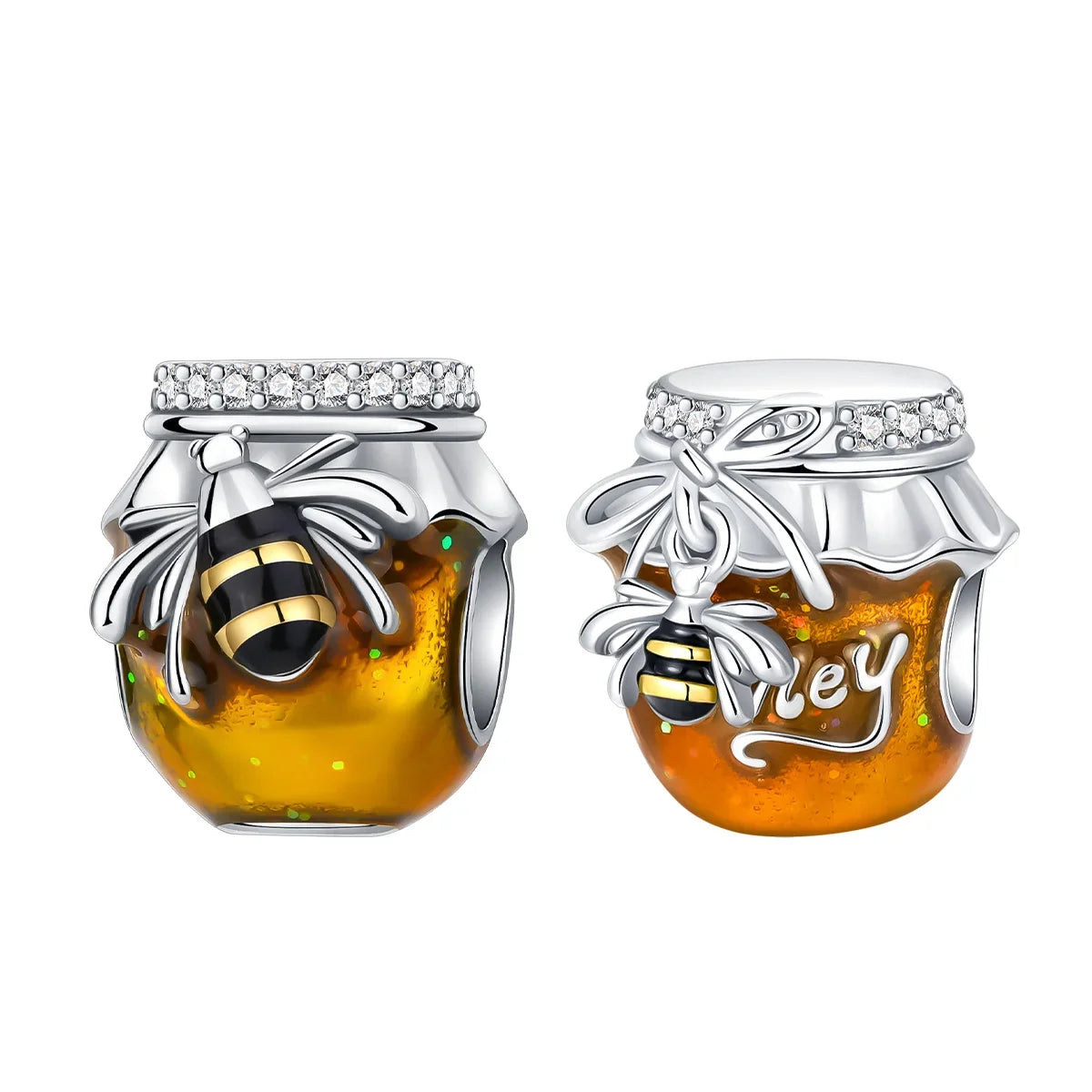 925 Sterling Silver Bee Honey jar Yellow series pandent Charm Fit Bracelet DIY Bead Ms Premium Jewelry Valentine's Birthday Gift