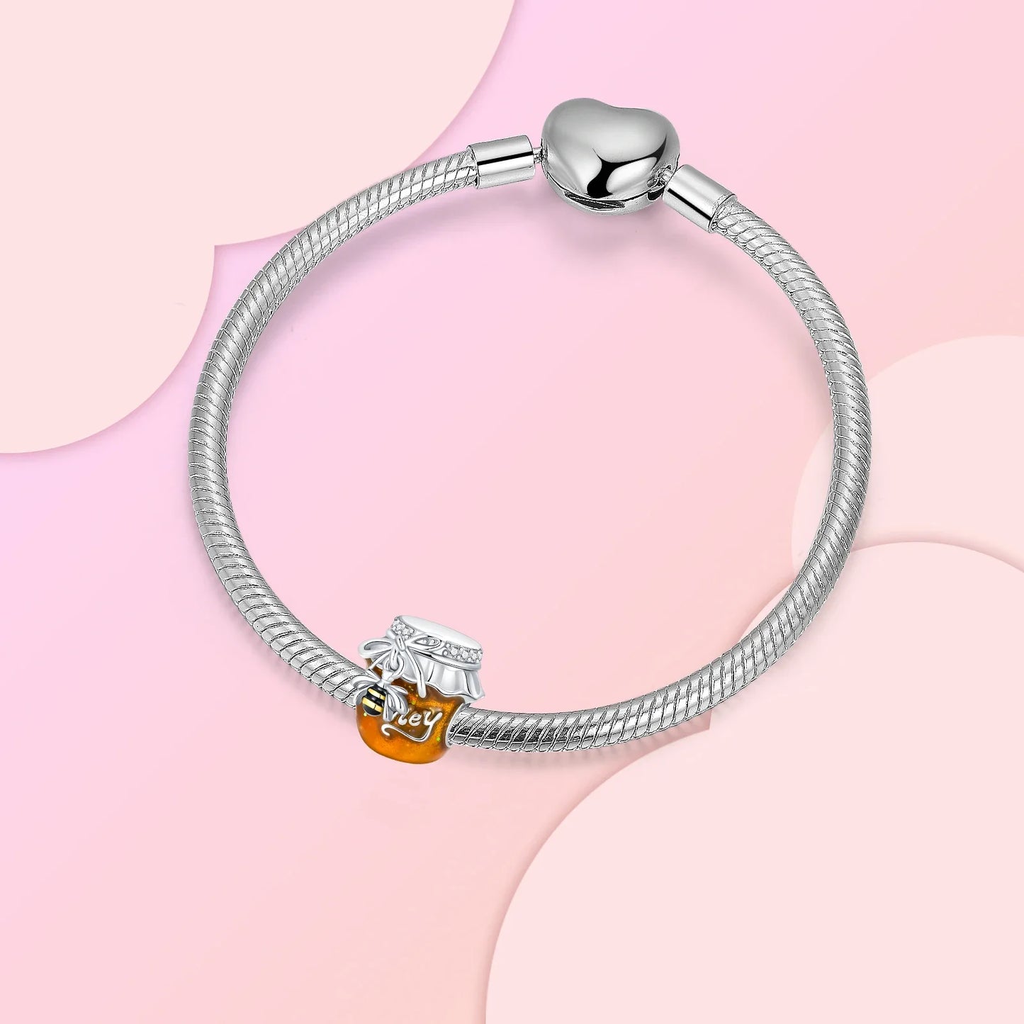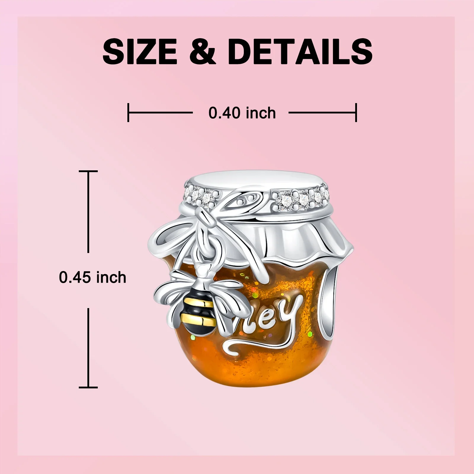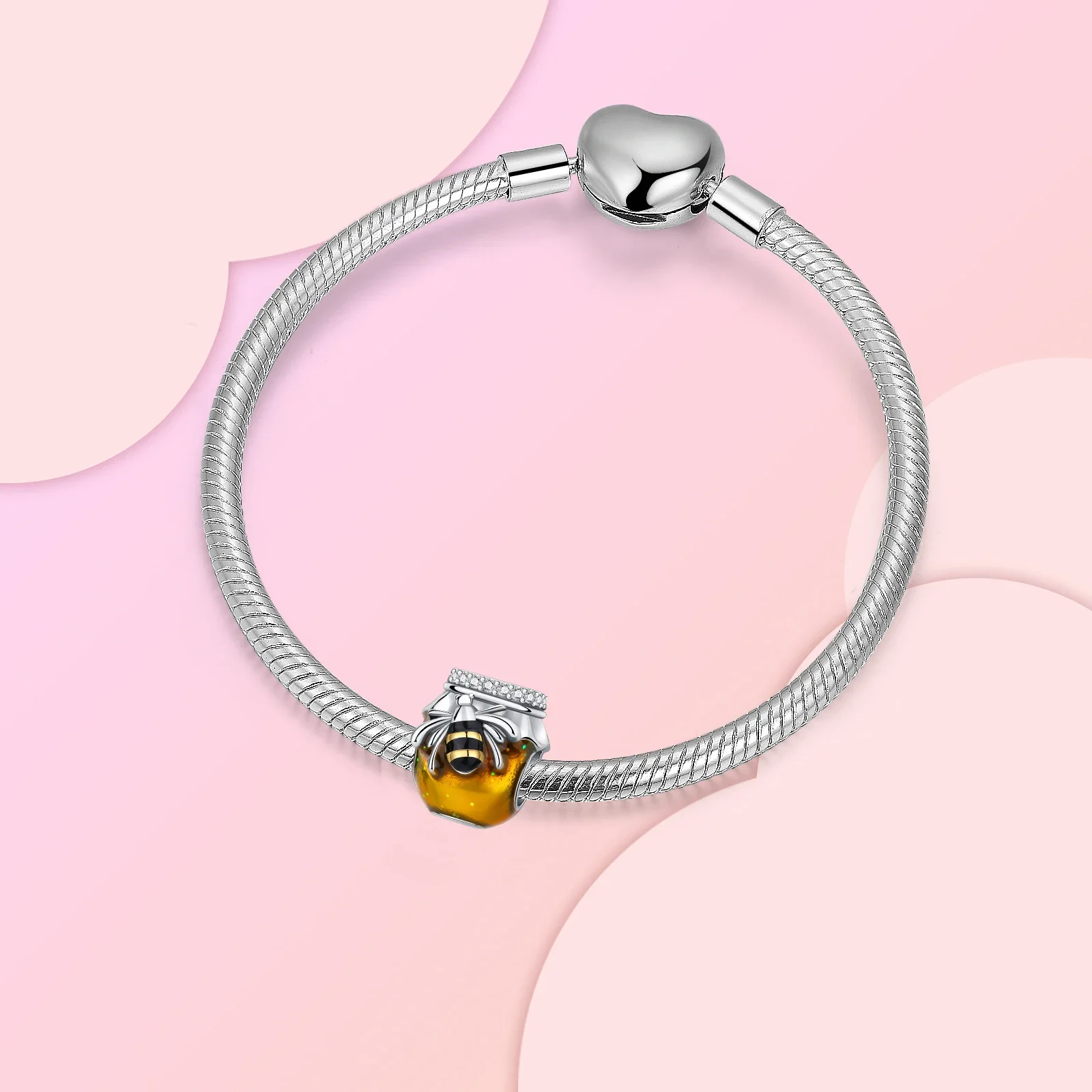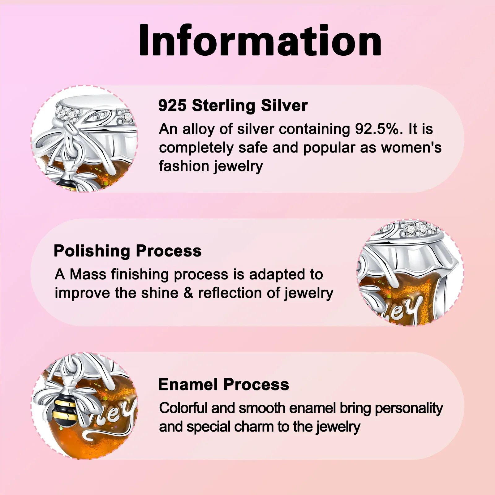 925 Sterling Silver Bee Honey jar Yellow series pandent Charm Fit Bracelet DIY Bead Ms Premium Jewelry Valentine's Birthday Gift