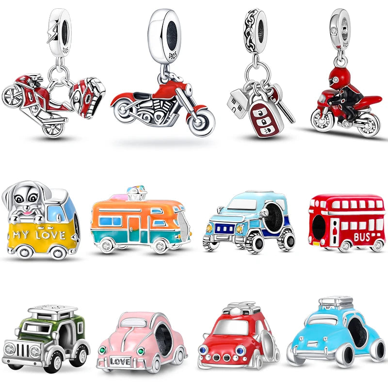925 Sterling Silver Motorcycle Red Sports Car SUV Bus Car Keys Charm Pendants For Women Fit DIY Bracelets Party Birthday Jewelry