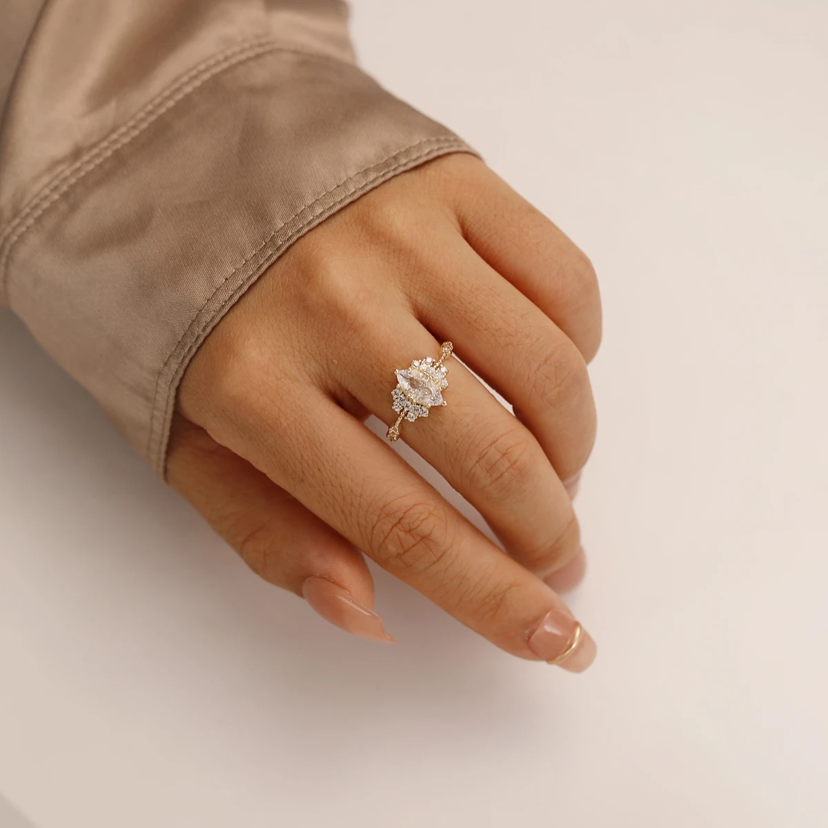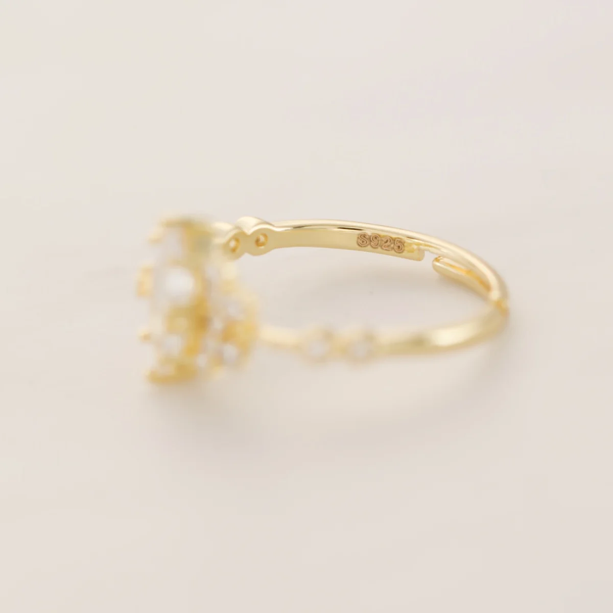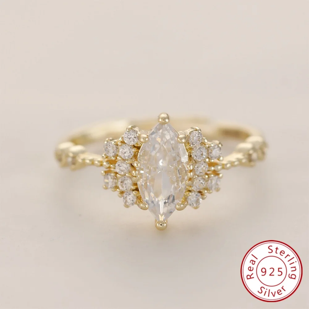 925 Sterling Silver Open Ring for Women 14K Gold Plated Boho Shiny Artificial crystal and Cubic Zirconia Daily Wear Fine Jewelry