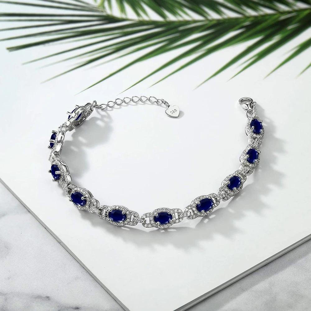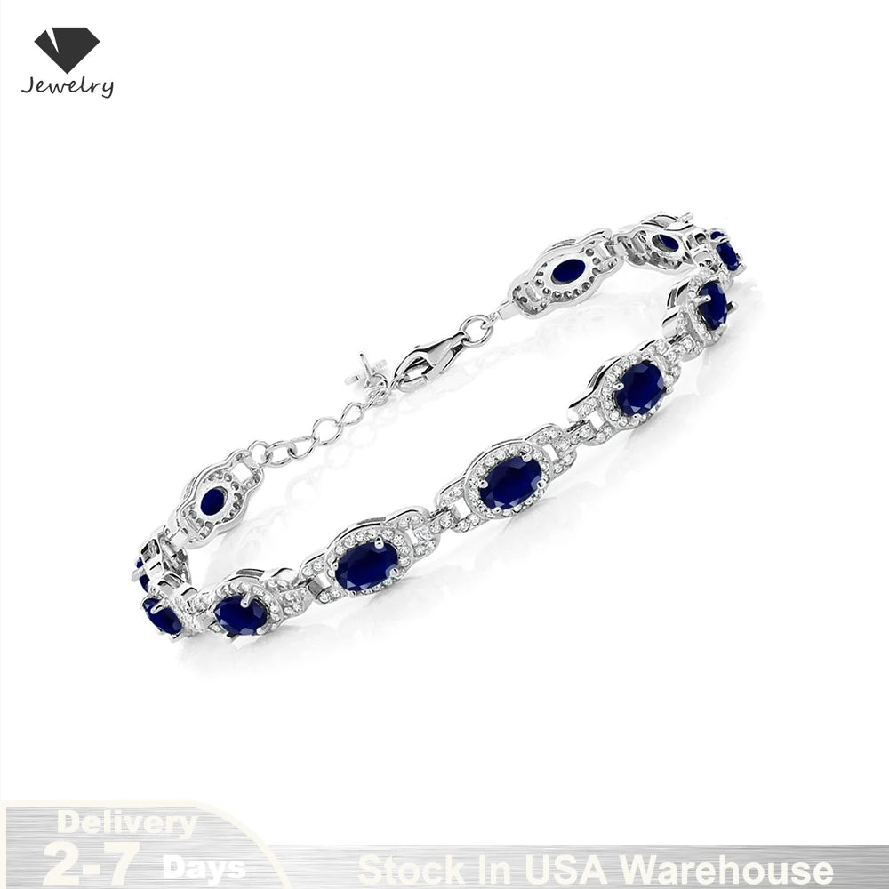 925 Sterling Silver Oval Gemstone Birthstone Tennis Bracelet for Women Fine Jewelry Gifts for Her Mom Women Wife USA Warehouse