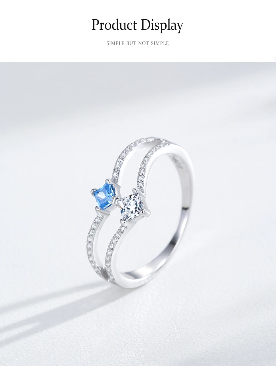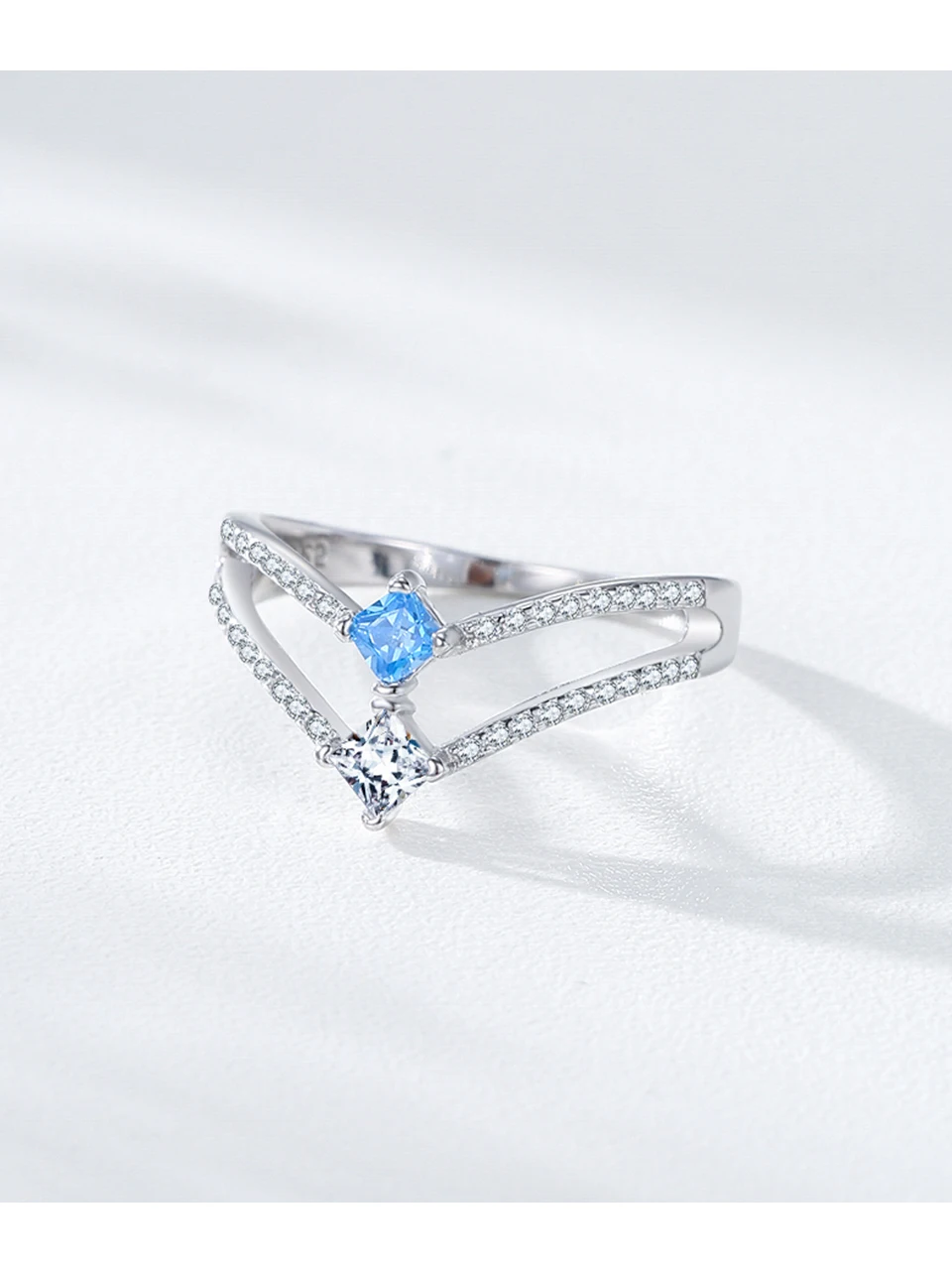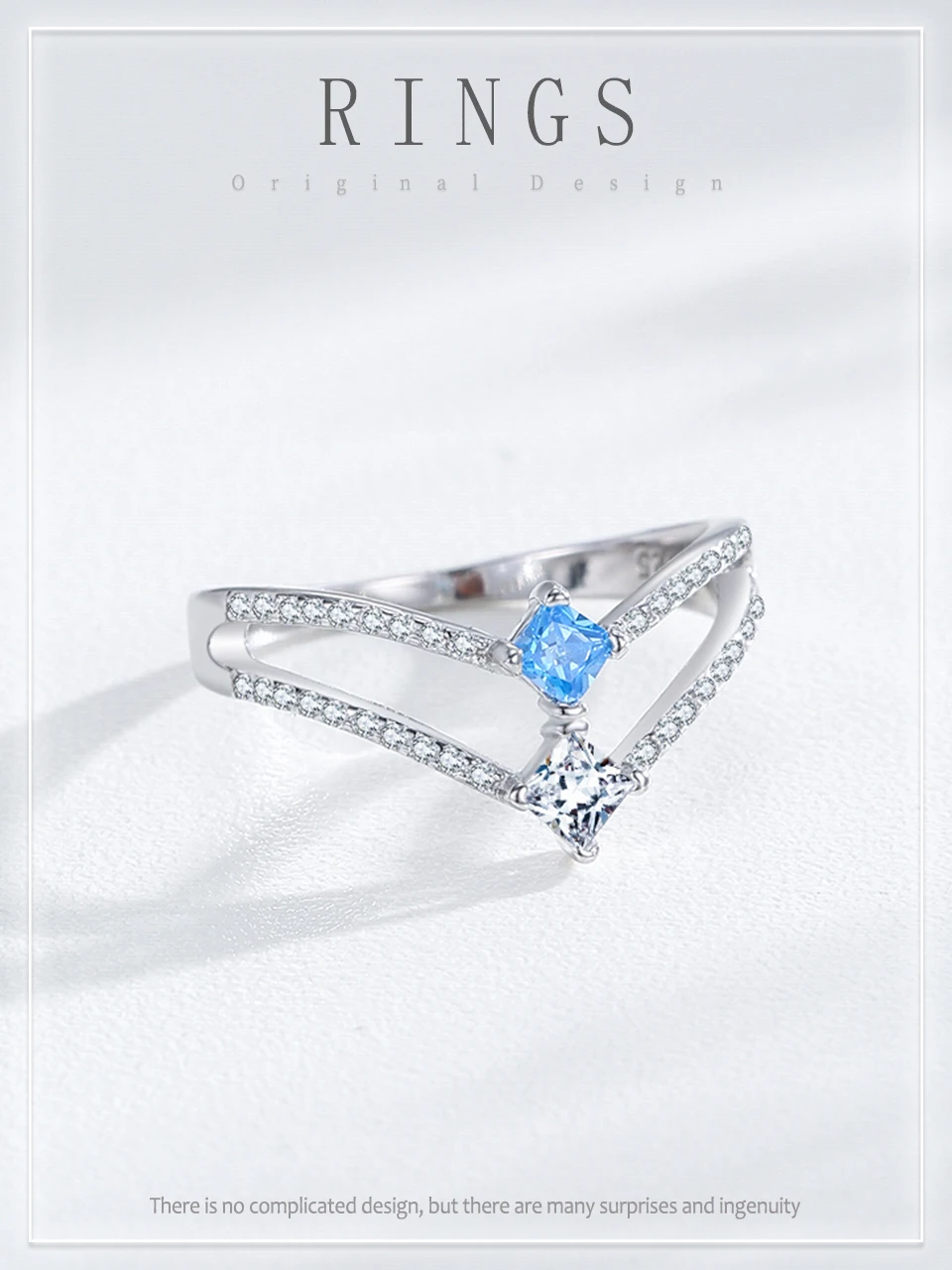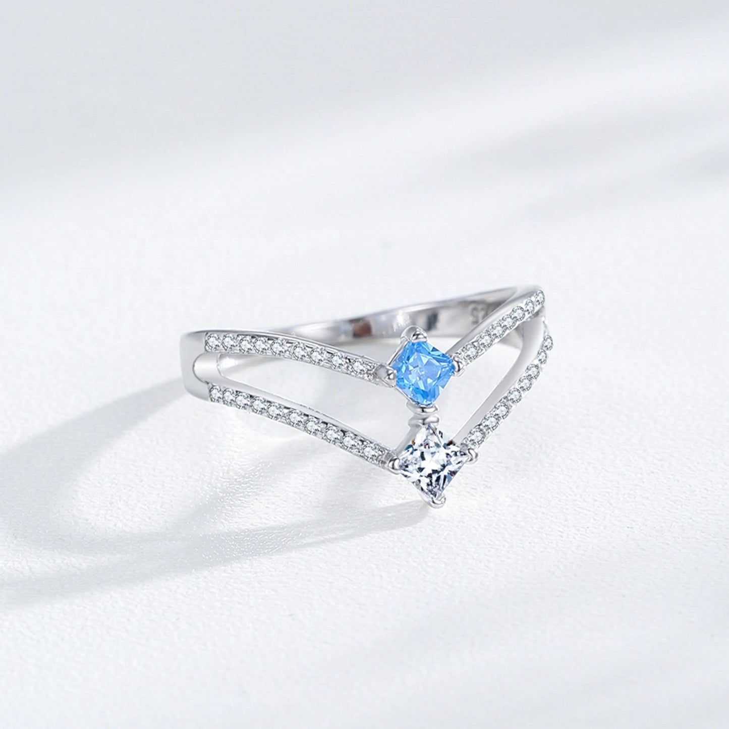 Ailmay 925 Sterling Silver Double-Layer Water Droplet Shaped Blue & White Zircon Ring For Women Personality Gift Party Jewelry