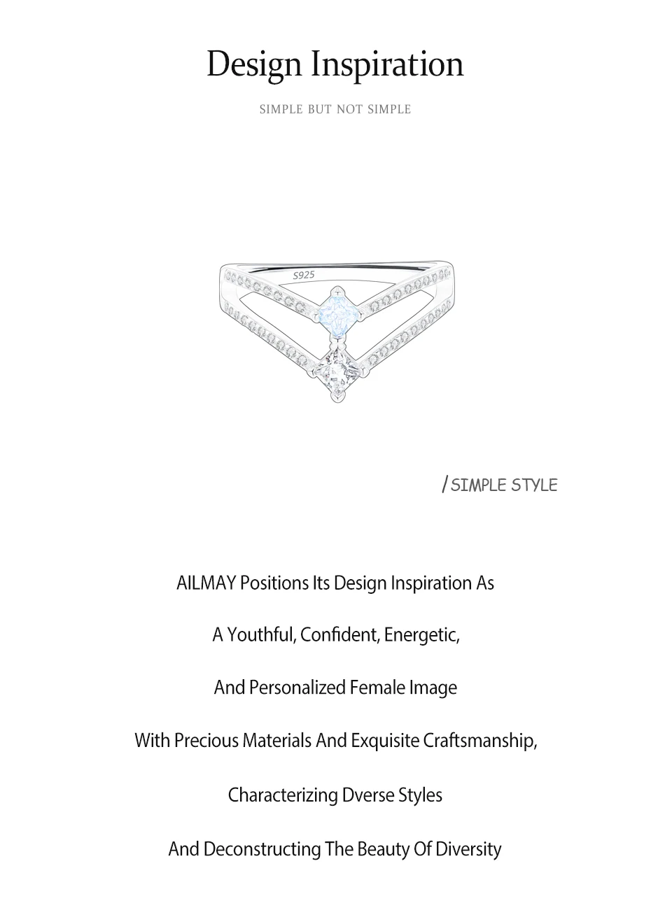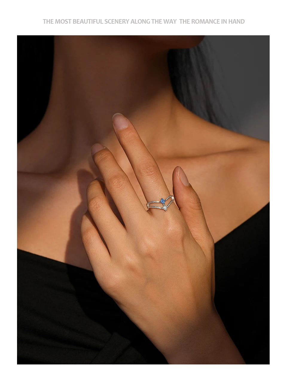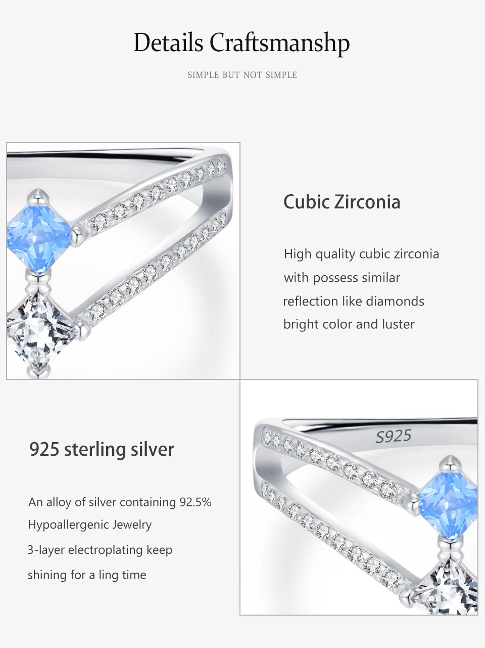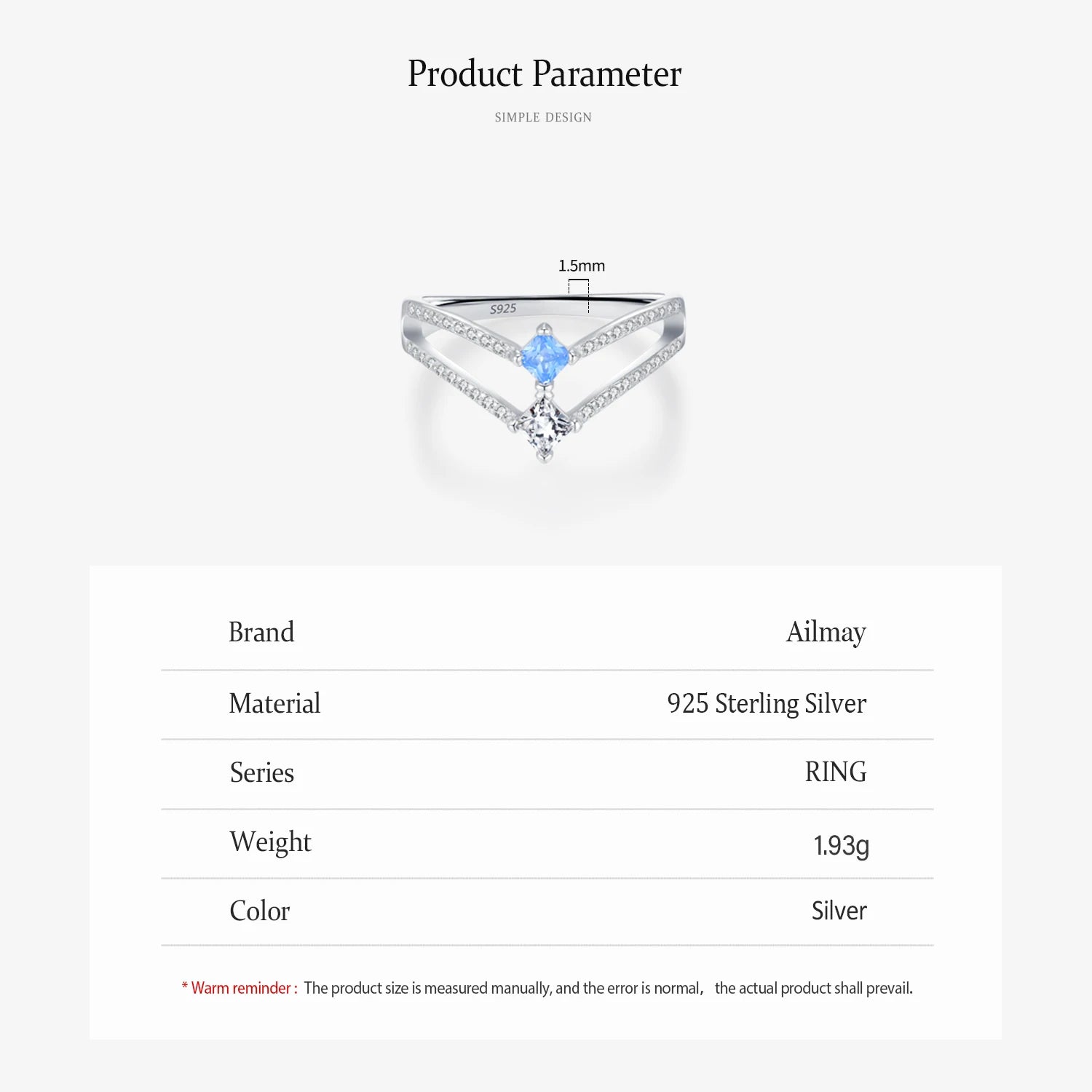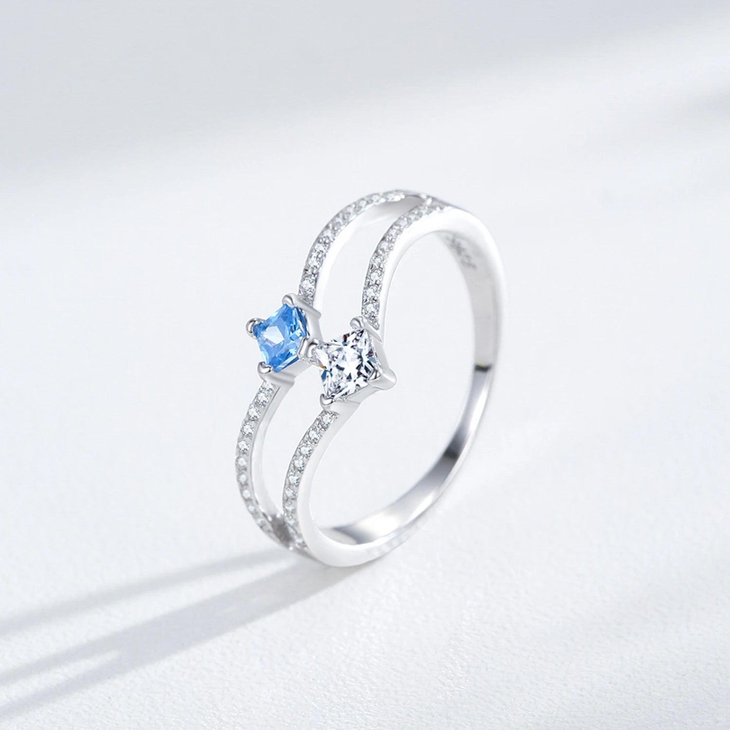 Ailmay 925 Sterling Silver Double-Layer Water Droplet Shaped Blue & White Zircon Ring For Women Personality Gift Party Jewelry