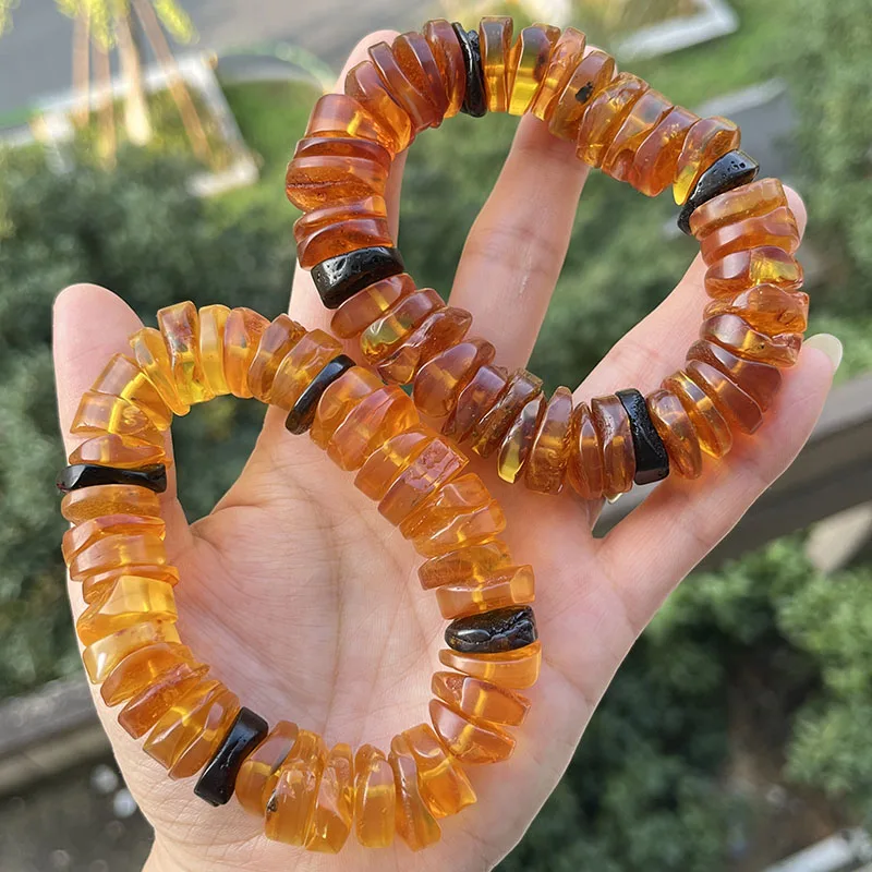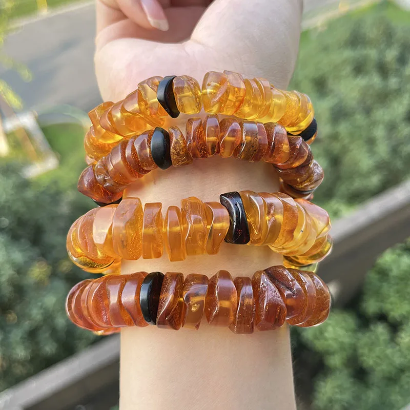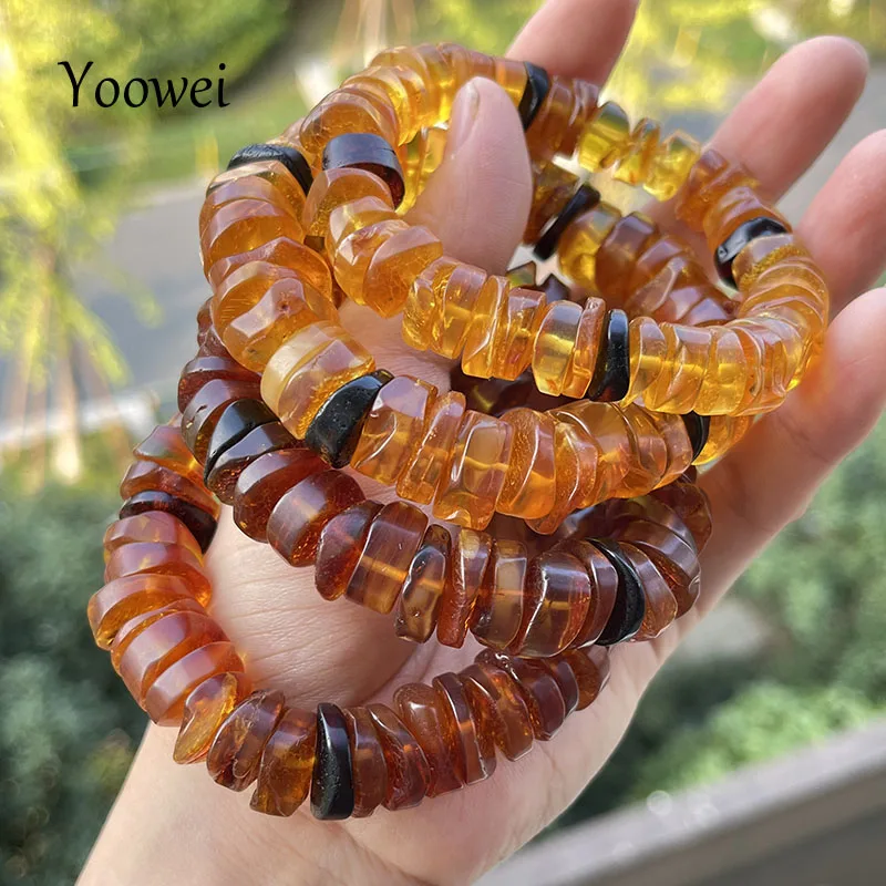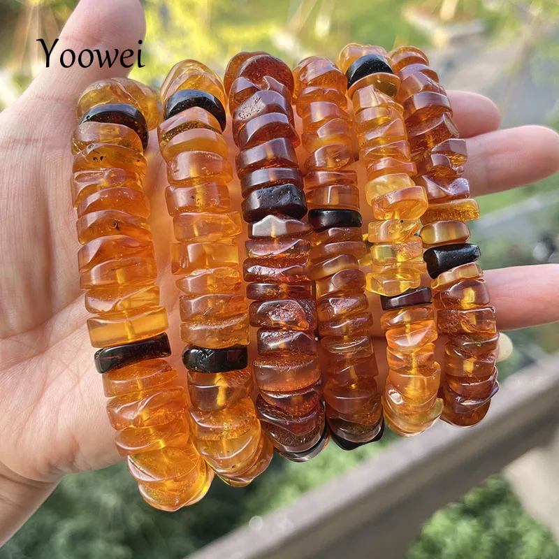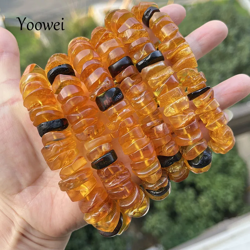 【Title】Yoowei Real Amber Bracelet Wholesale Men Women Gift 100% Genuine Beads Irregular New Natural Plant Healing Jewelry Supplier