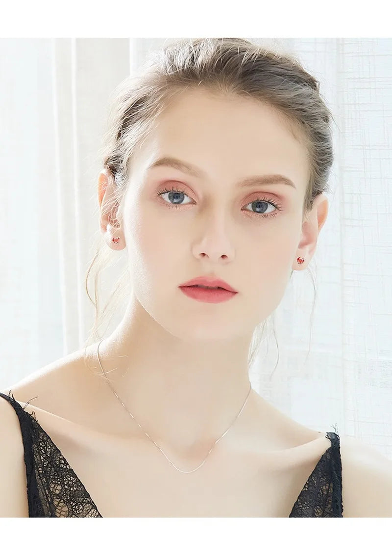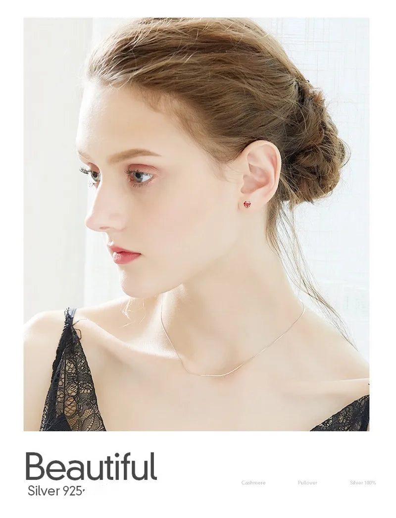 Buyee 925 Sterling Silver Small Stud Earring Light RED CRYSTAL Simple Heart Earring for Woman Fashion Party Fine Jewelry Earring