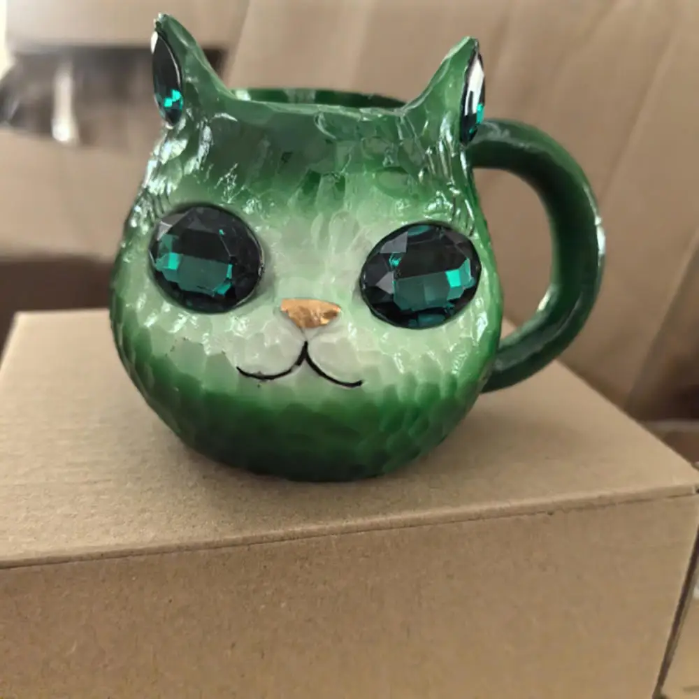 Cat Mineral Crystal Coffee Mugs Handmade Resin