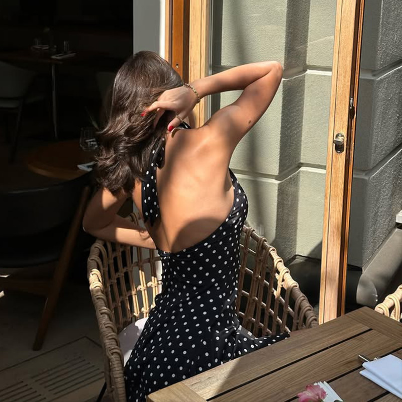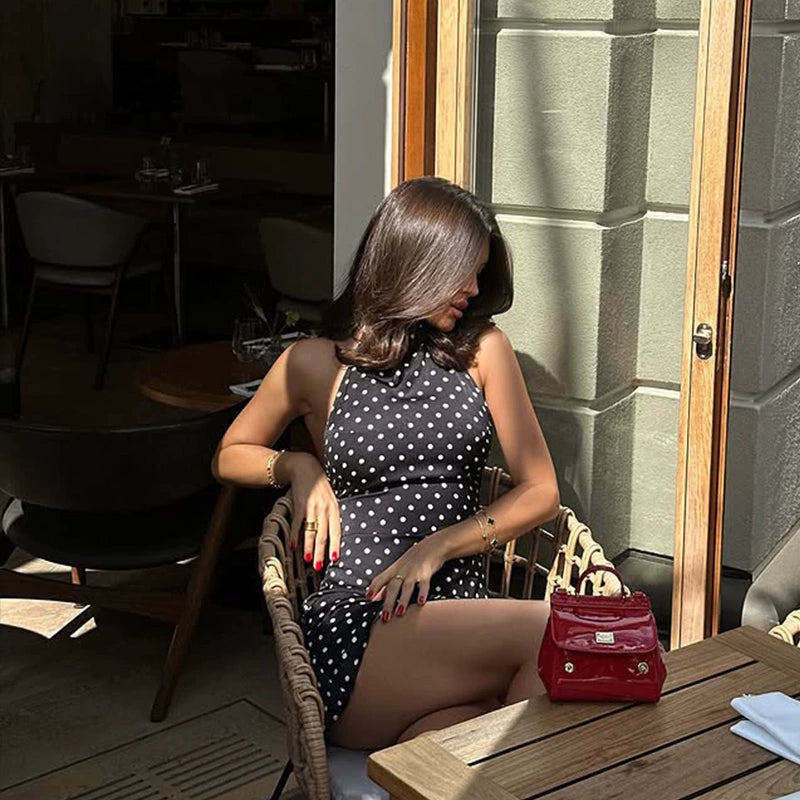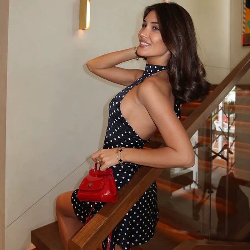 Cnyishe Elegant Temperament Gyaru Polka Dot Print Hanging Neck Dress Slim fit Slimming Young Style A Word Short Skirt
