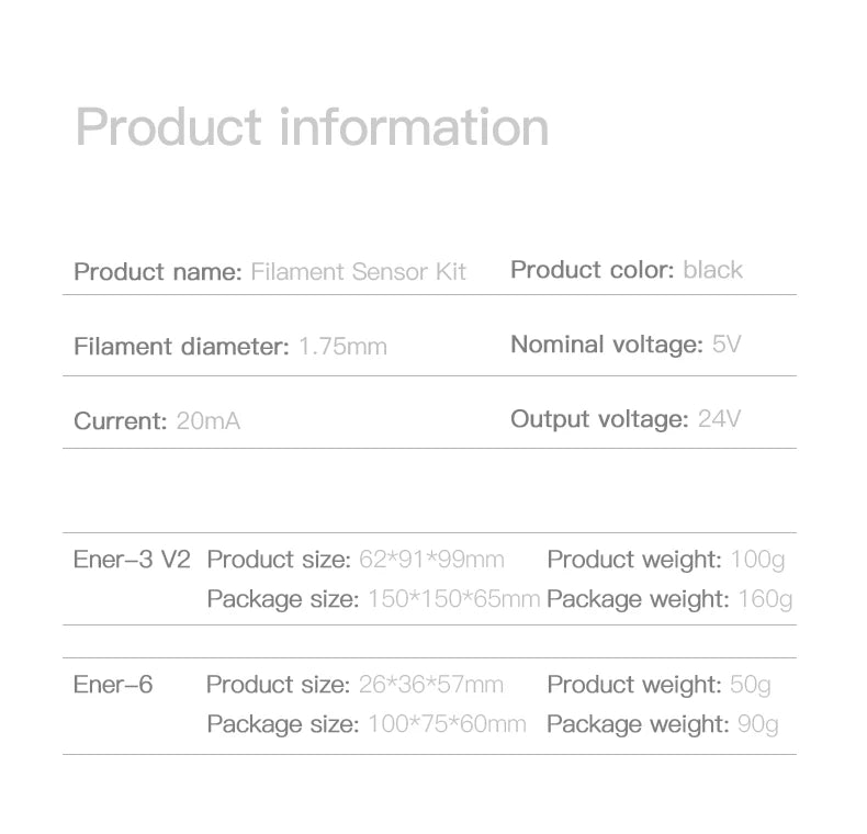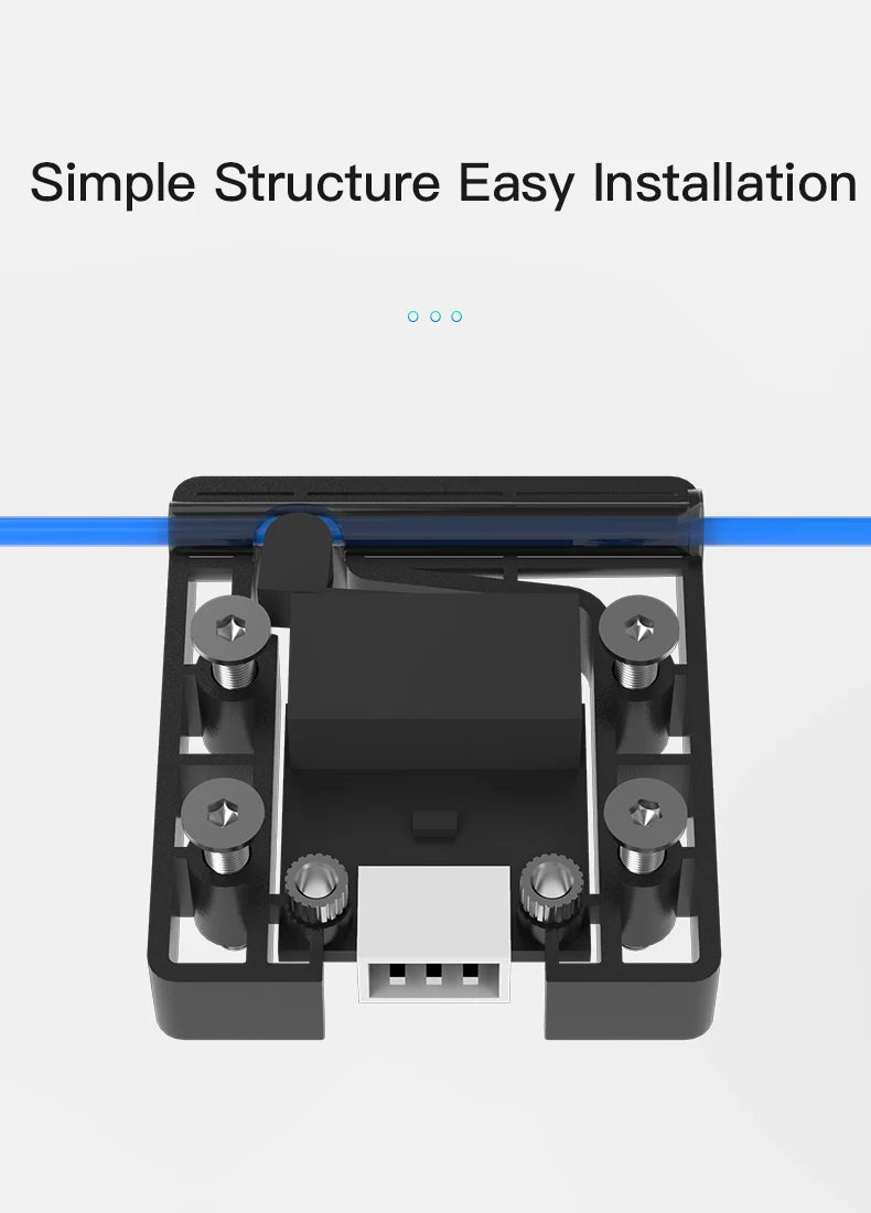 【Smooth filament travelling】 The filament sensor has a built-in filament guider, which is made of metal material with smooth surface, reducing friction resistance and ensuring smooth filament feed-in.