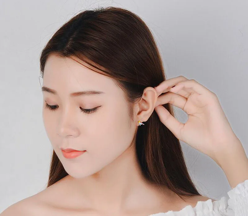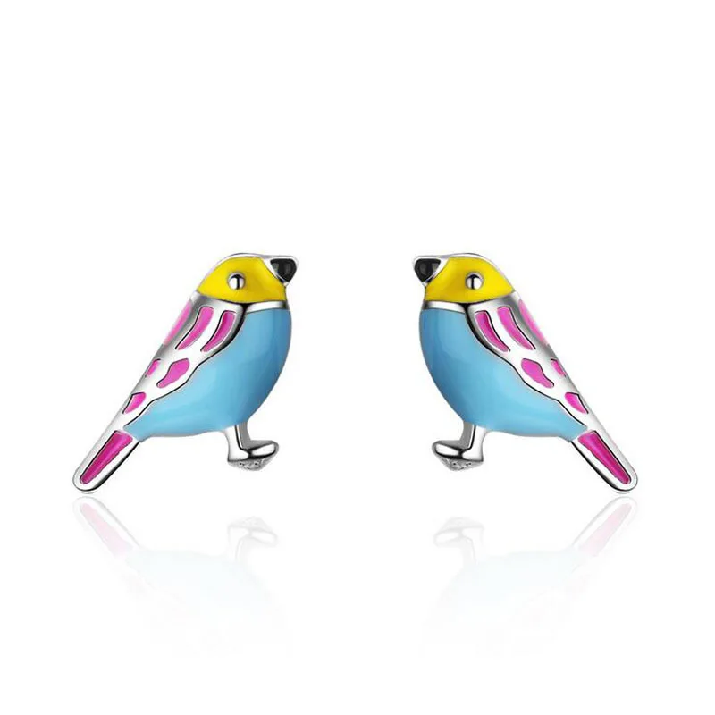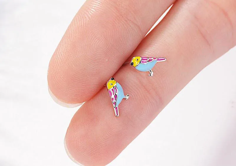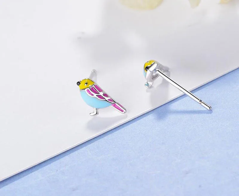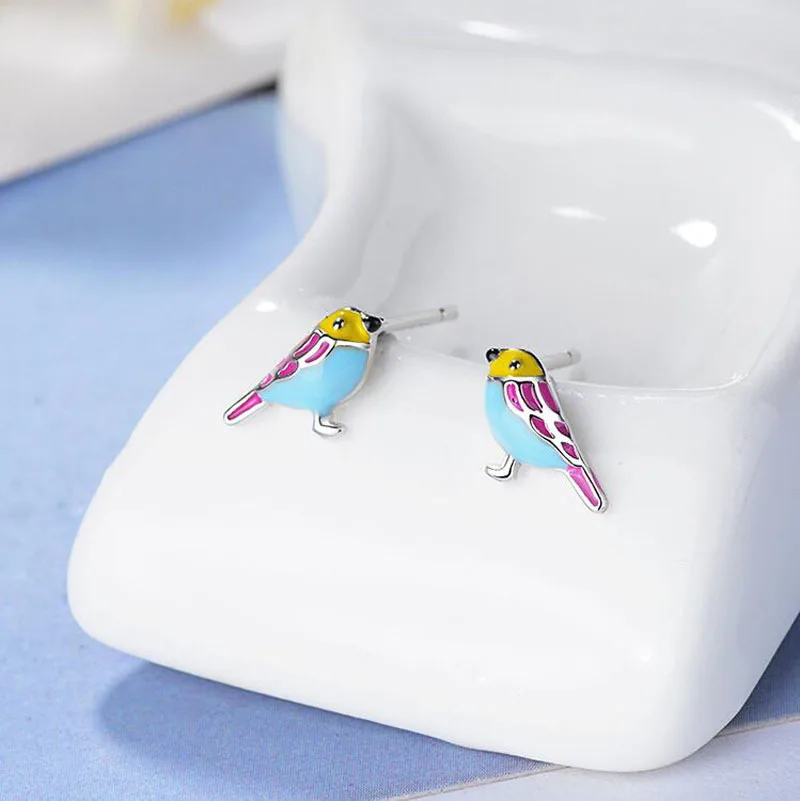 Cute 925 Sterling Silver Colorful Bird Stud Earrings For Kids Children Girl Lovely Animal Sterling-silver-jewelry