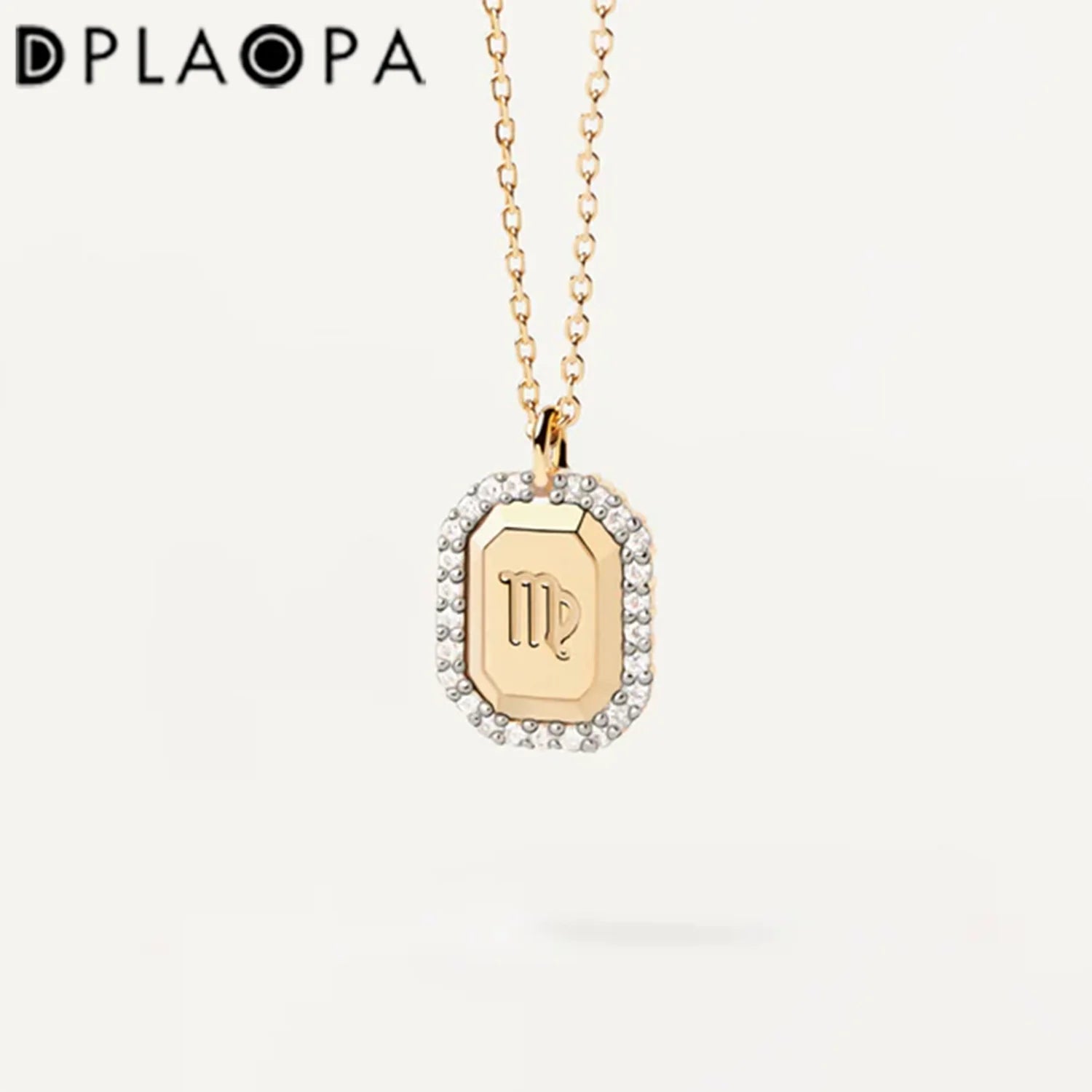 DPLAOPA 925 Sterling Silver Zodiacs Aries Gemini 12 Pendant Long Chain Necklace Fine Jewelry Choker Months Girls Birthday Gift