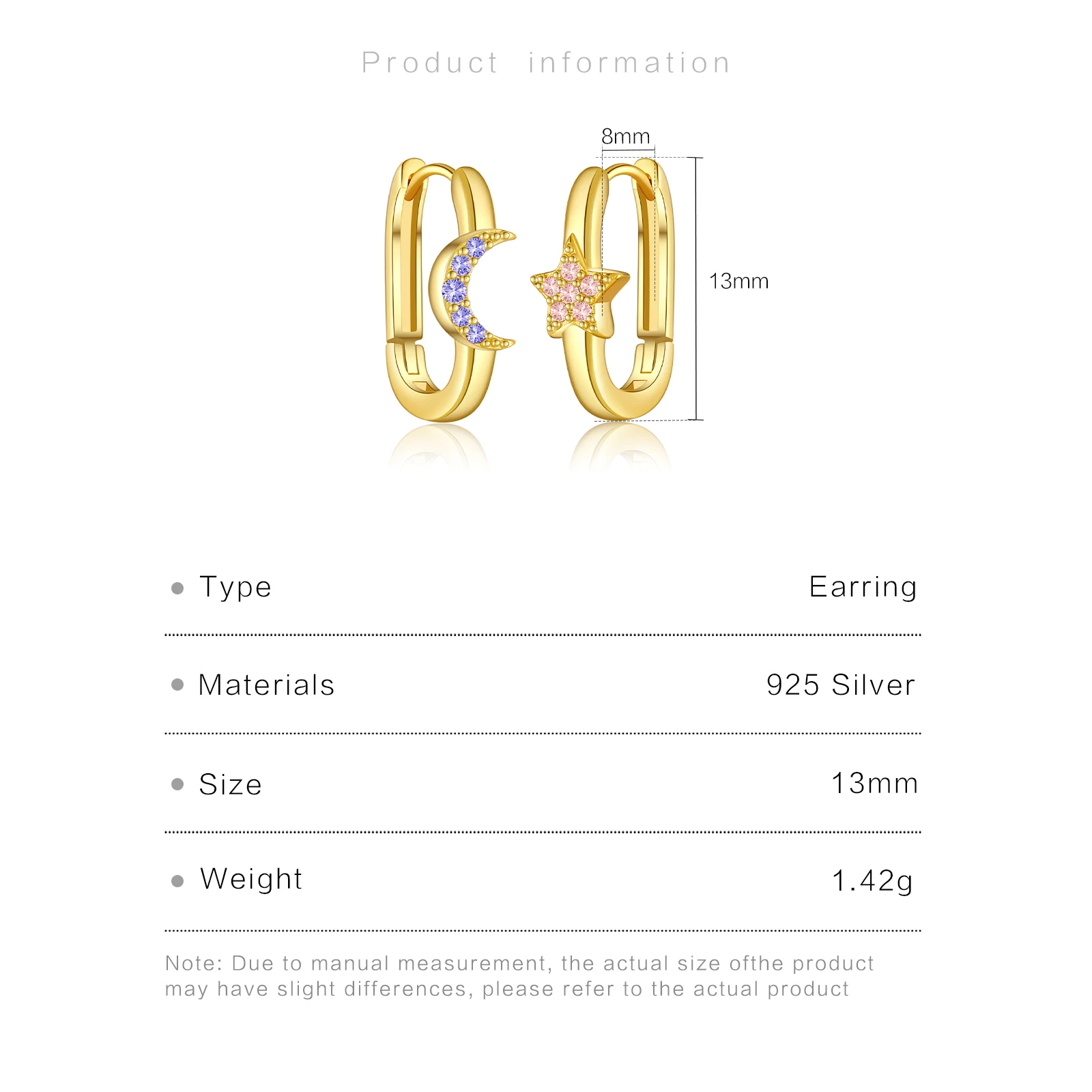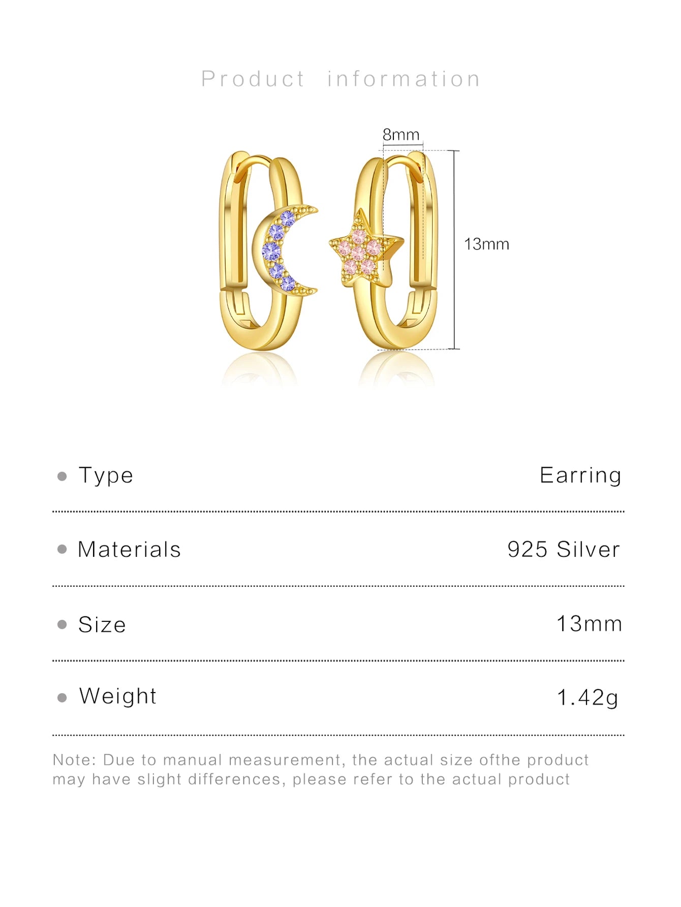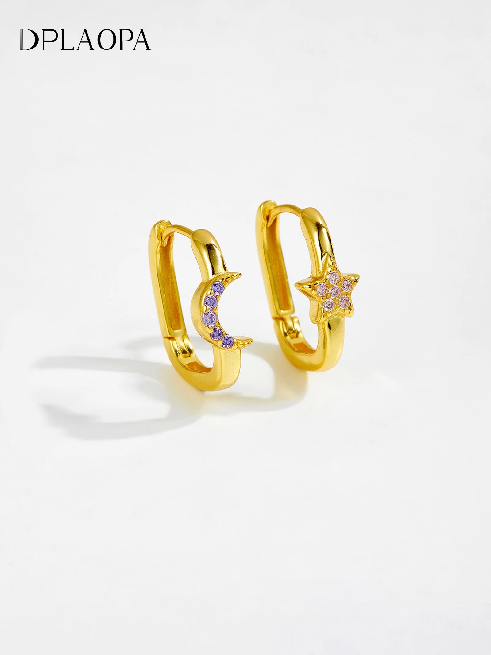 DPLAOPA Women 925 Sterling Silver Light Purple Pink Moon Star Piercing Hoop Earring Loops 2024 New Luxury Fine Casual Jewelry