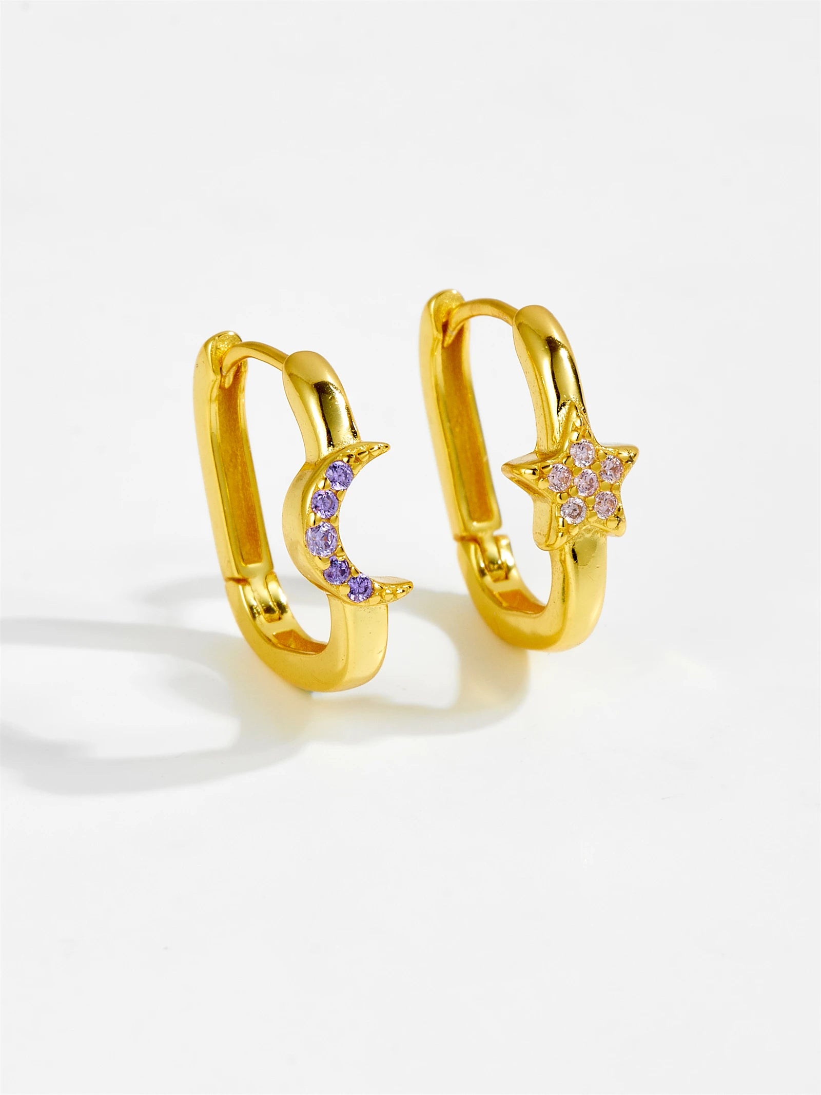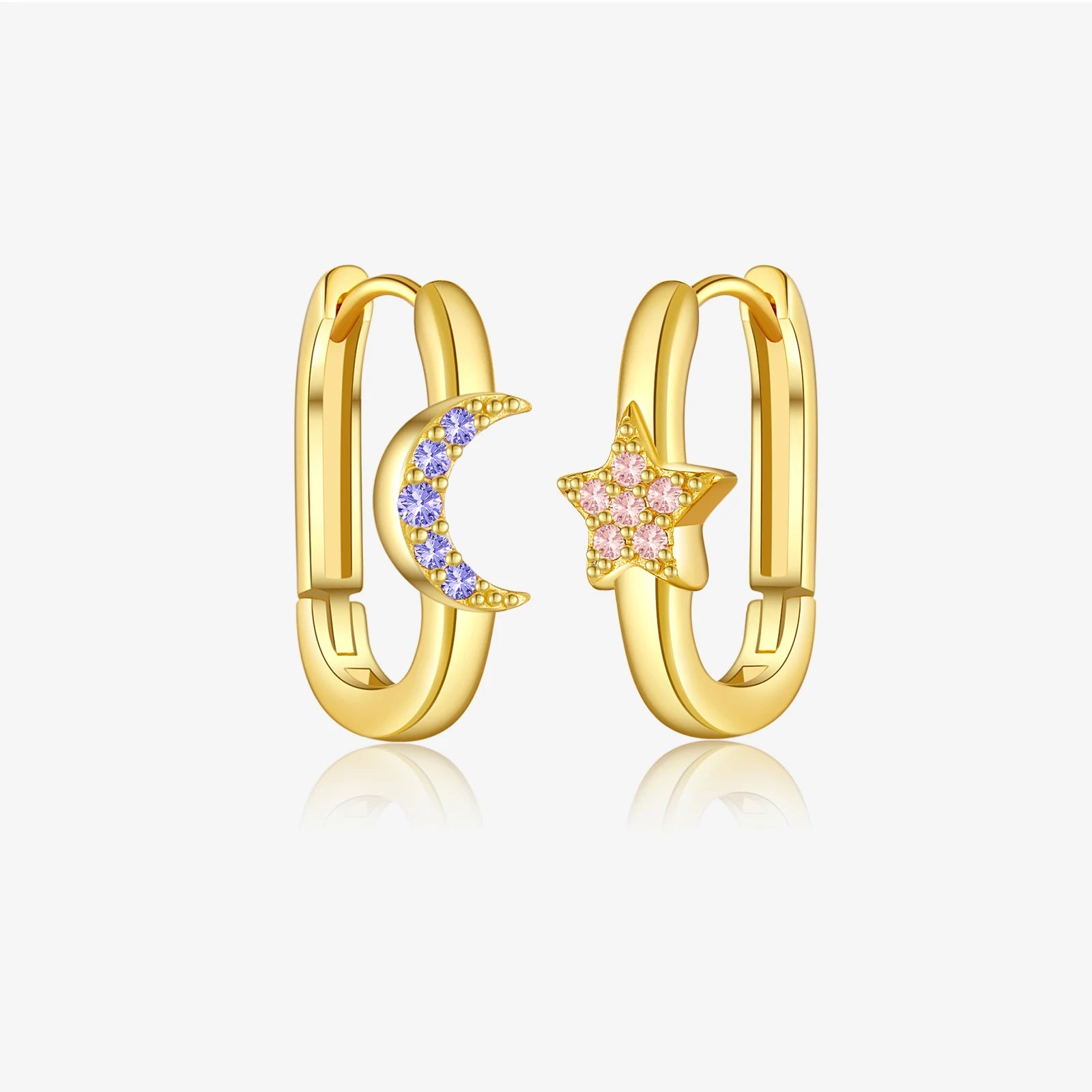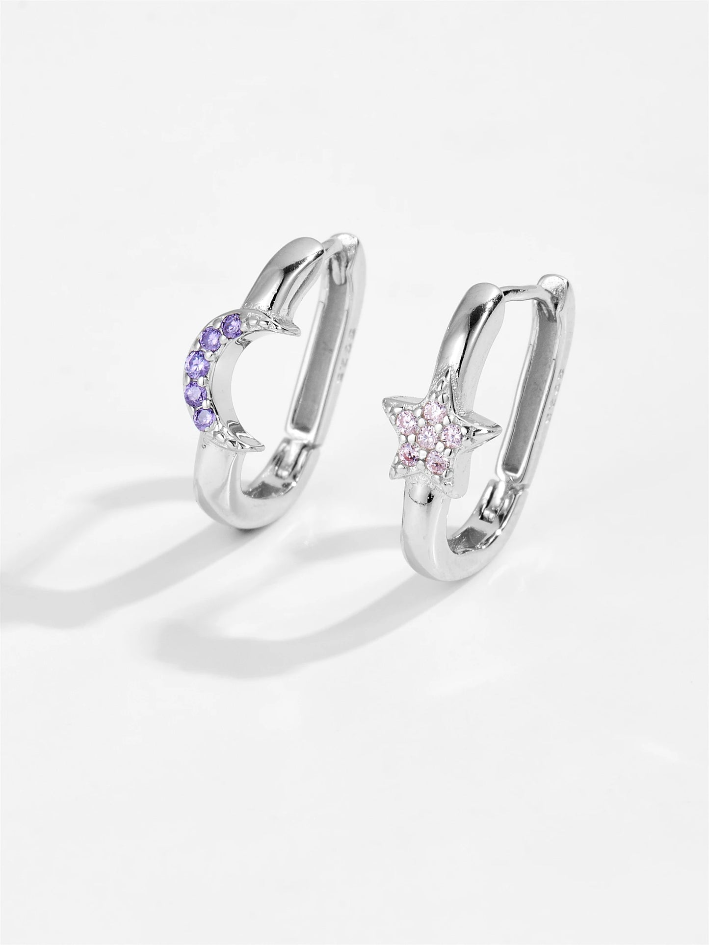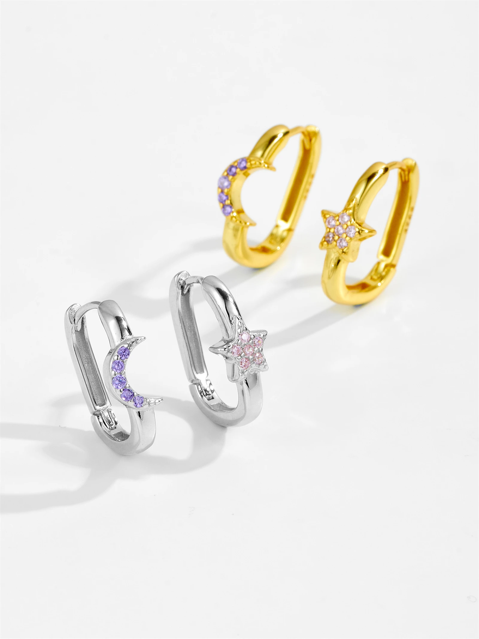 DPLAOPA Women 925 Sterling Silver Light Purple Pink Moon Star Piercing Hoop Earring Loops 2024 New Luxury Fine Casual Jewelry
