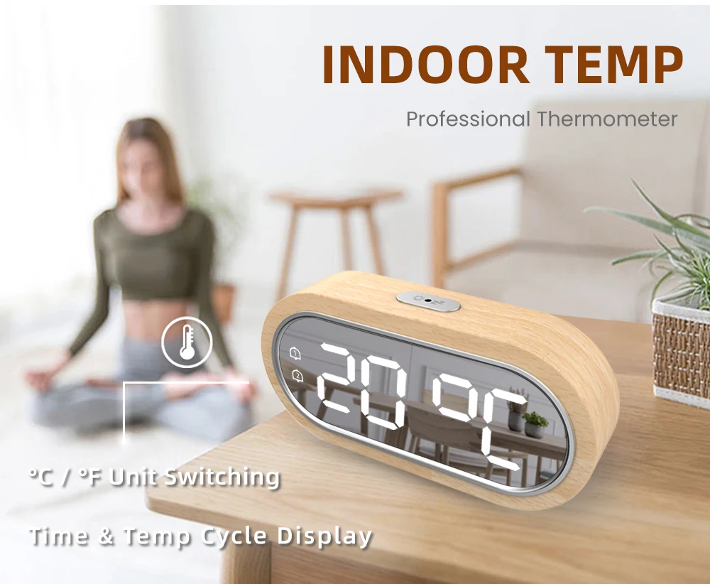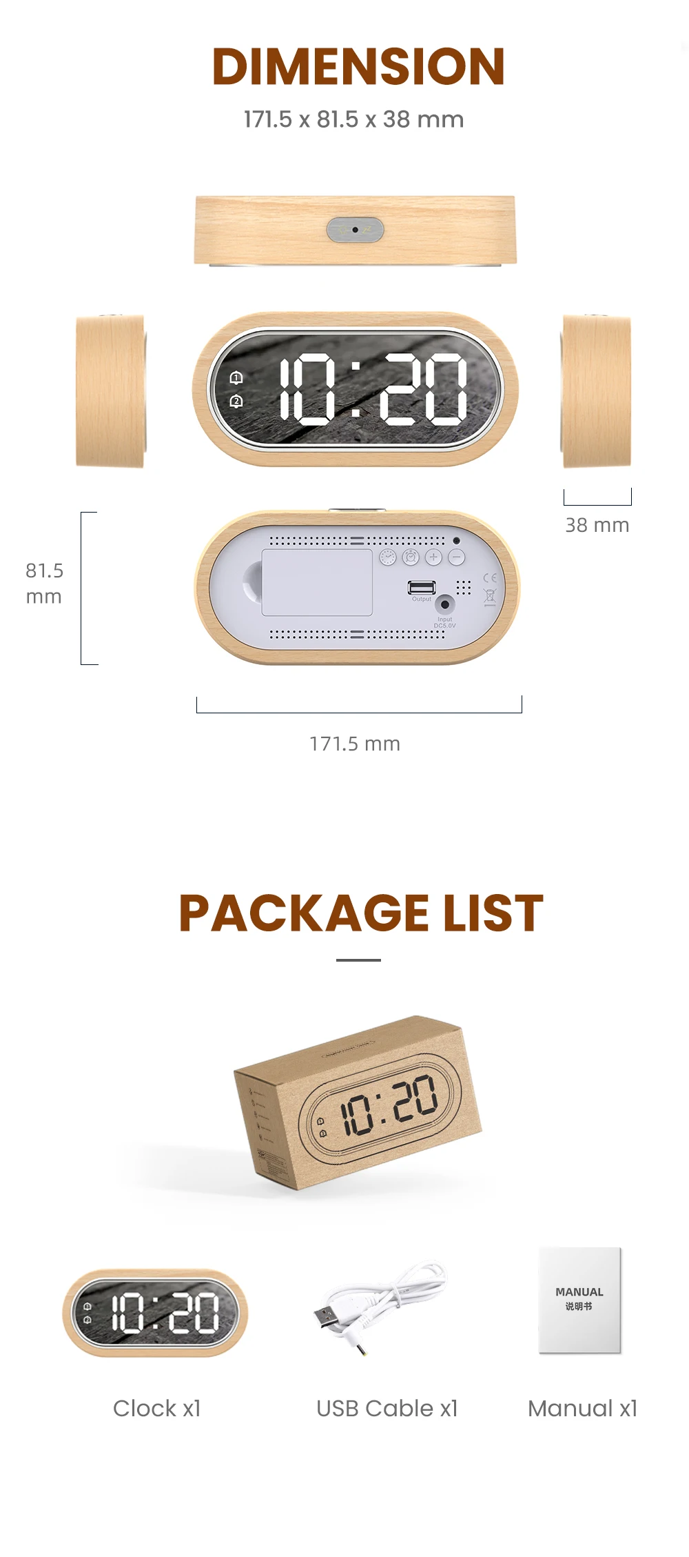 FanJu Digital Clock Alarm Snooze Table Thermometer Electronic USB charger LED Wooden Watch Living room Desk Clocks AAA Powered
