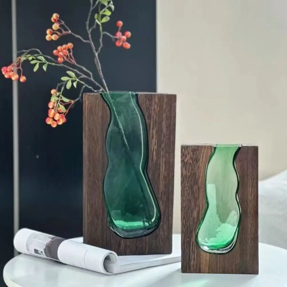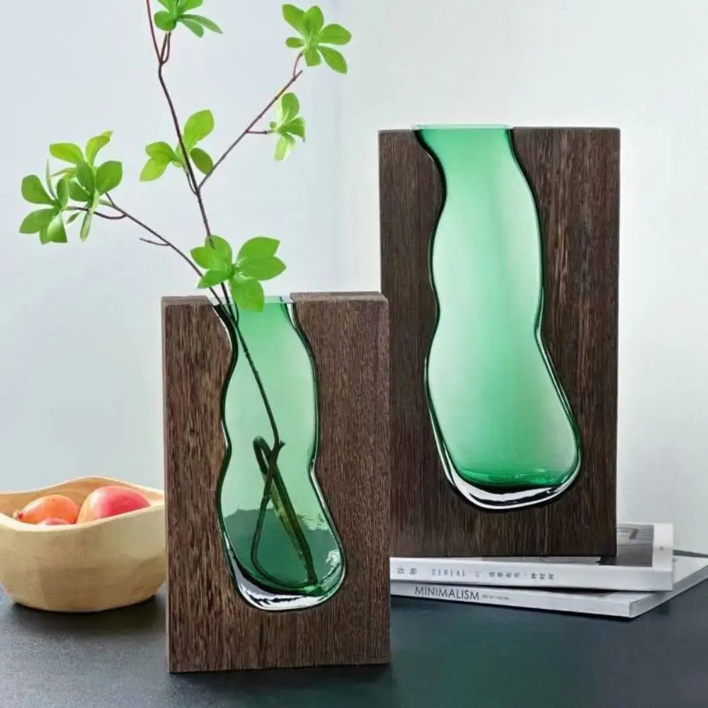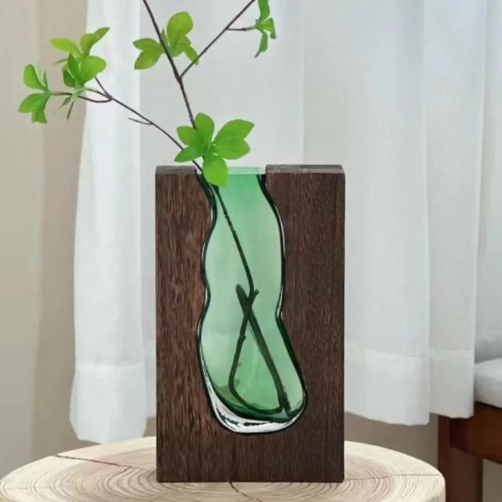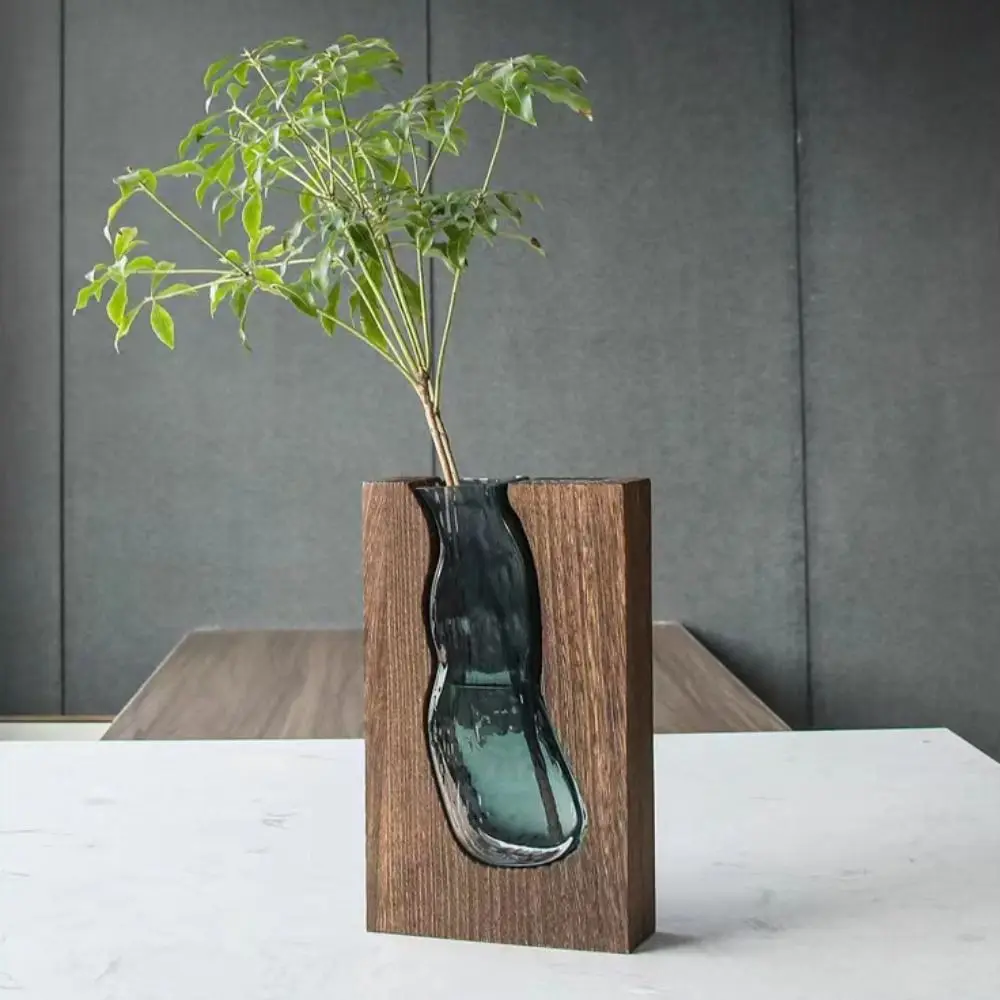 Flower Arrangement Bottle Wooden Glass Vase Creative Modern Hydroponic Flower Holder Exquisite Transparent Flower Pot Homestay