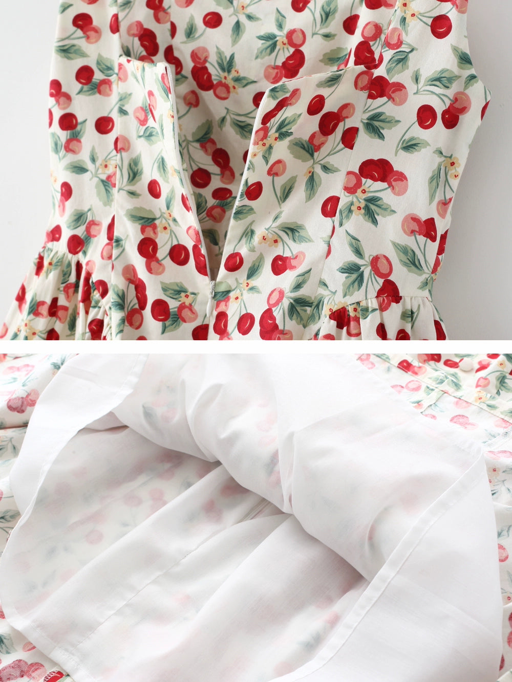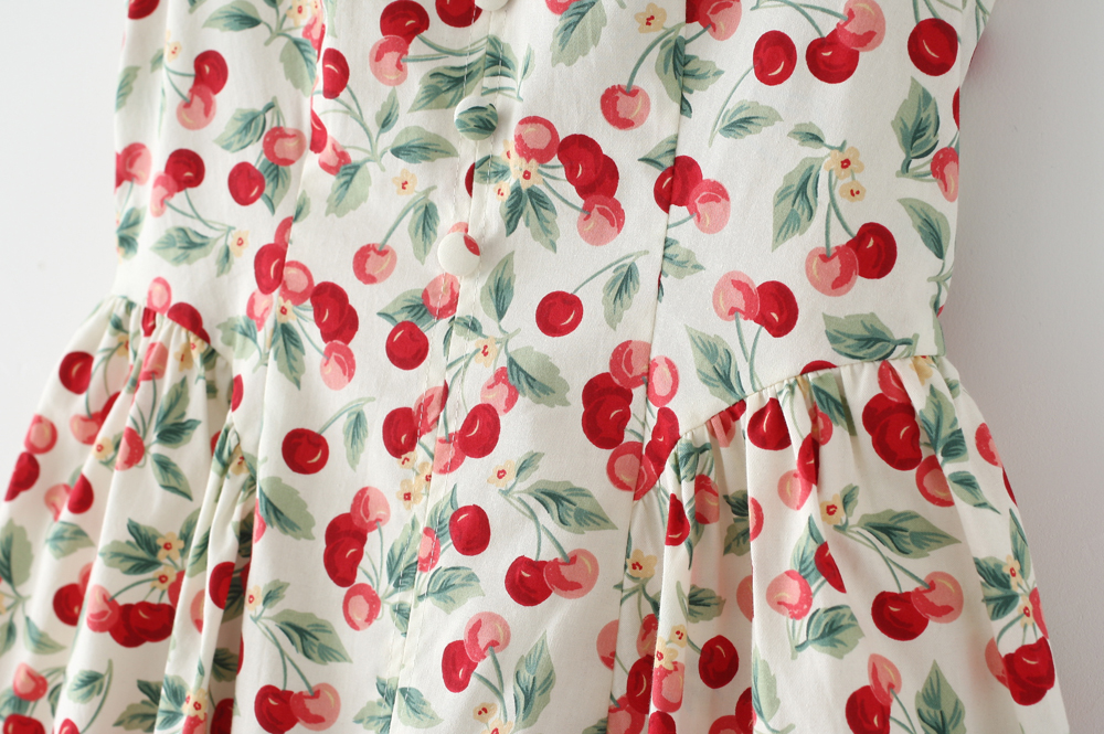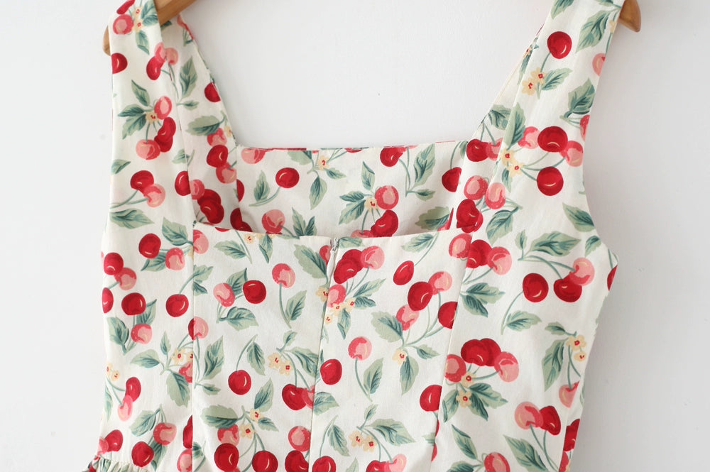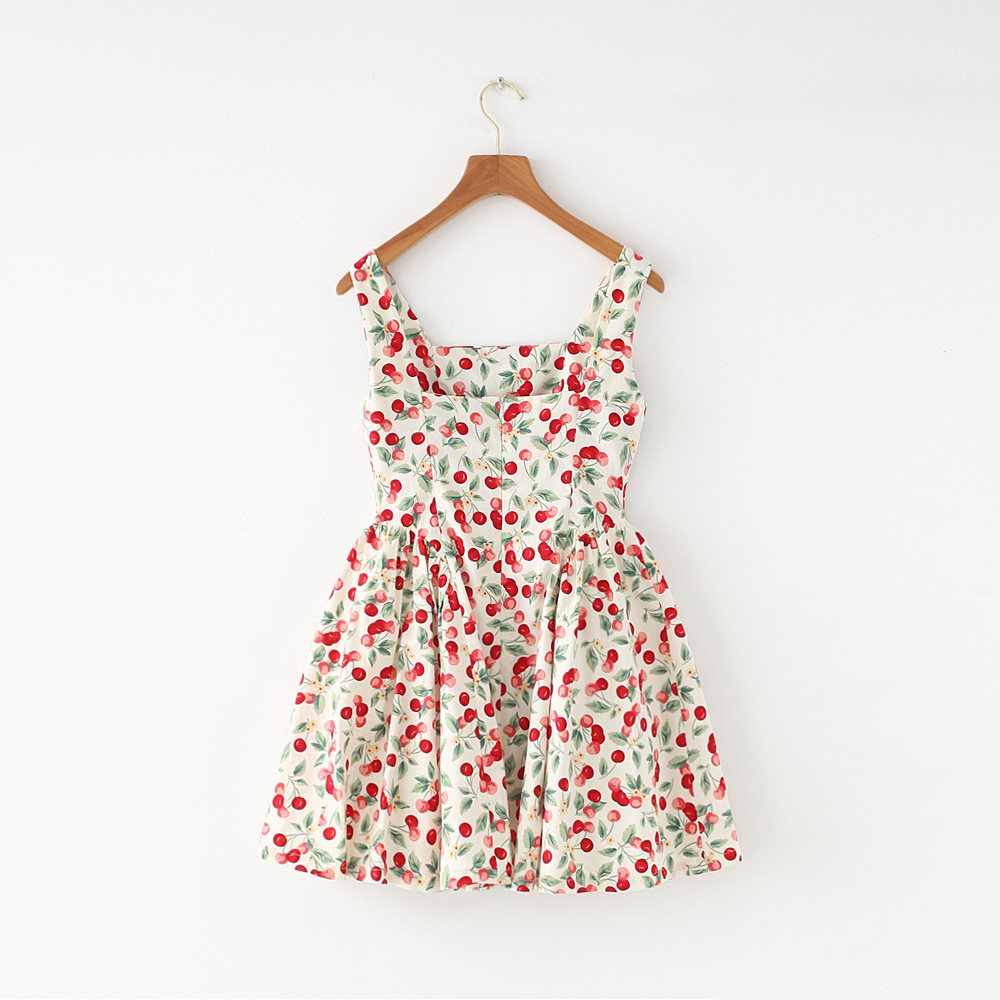 French Style American Retro Cherry Design Niche Style Slim Looking Tight Waist Large Skirt Sling Vest Skirt Dress New Arrival Women