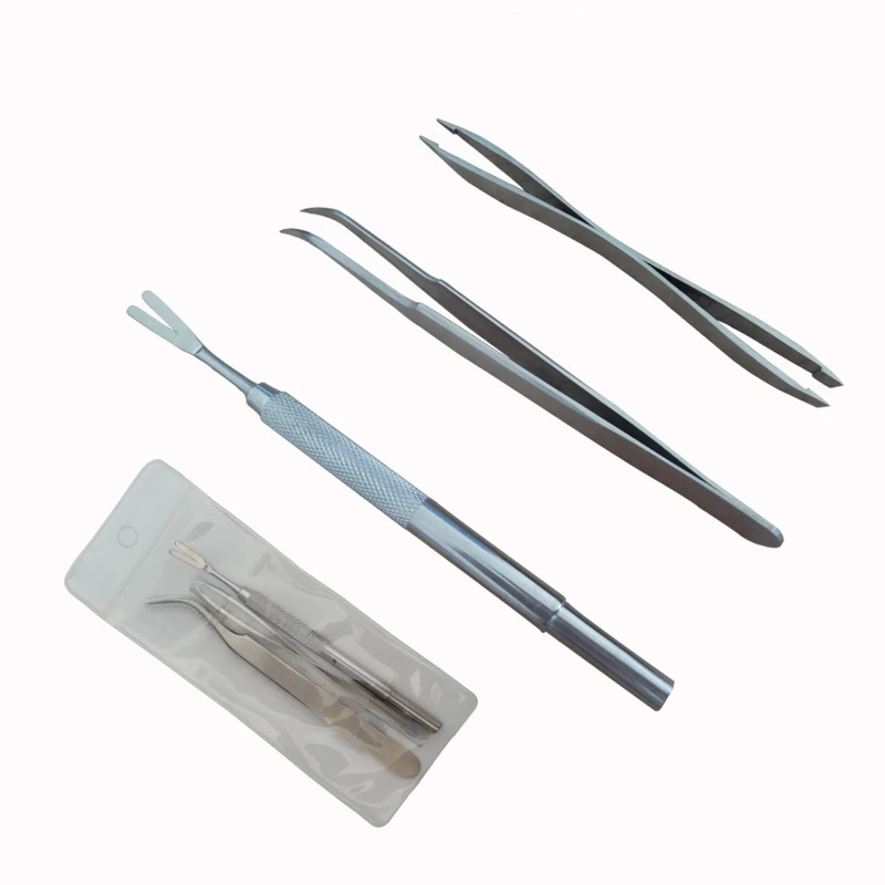 1. Start by cleaning the tweezers / tool with antiseptic.