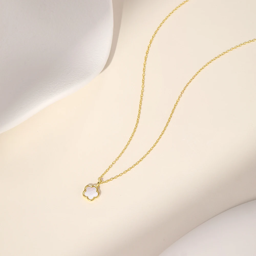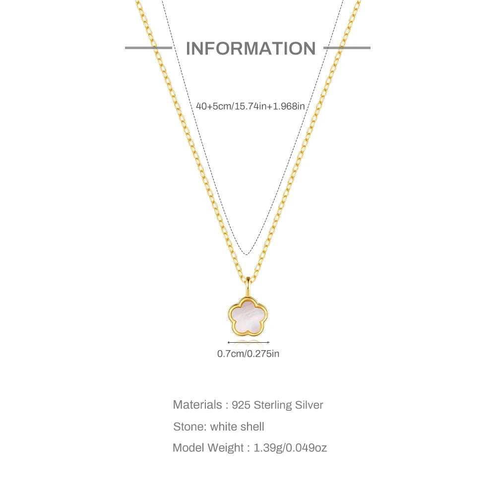 LENNIK 100% 925 Sterling Silver Women necklace plated with Exquisite five petal flower hollowed out white shell zircon plata 925