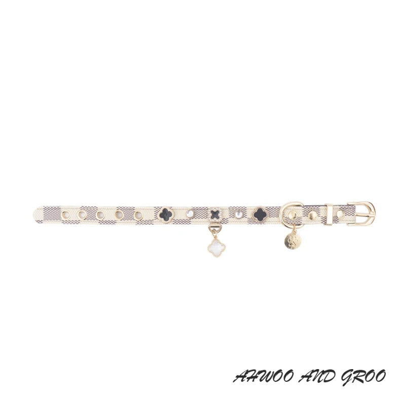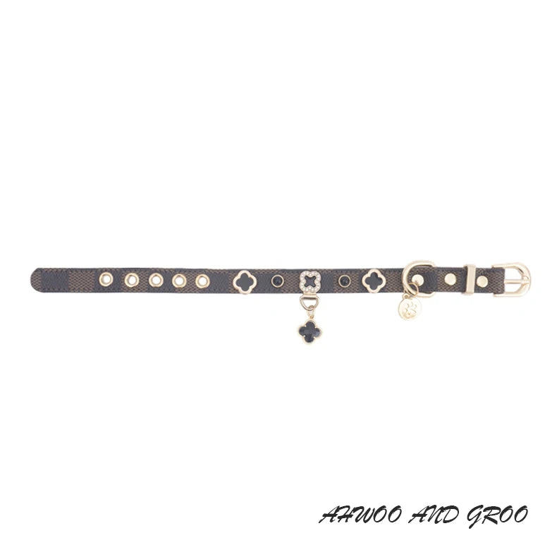 Luxury Cat Collar Lucky Clover Pet Necklace PU Leather Adjustable Cat Dog Collar Small Medium Dog Pet Accessories Perro Supplies
