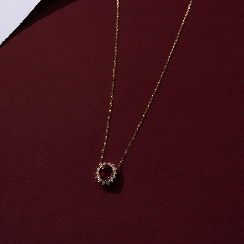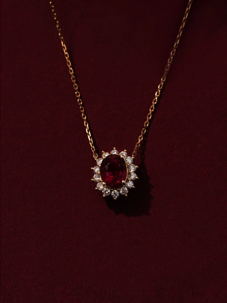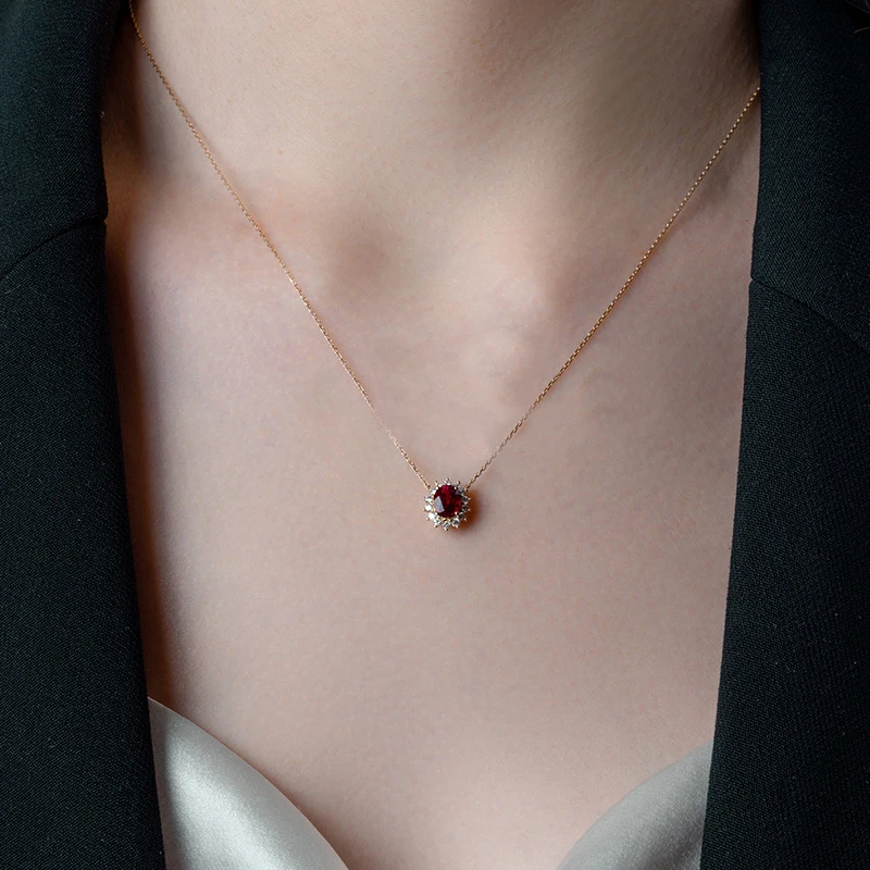 Metiseko 925 Sterling Silver Ruby Colour Chain Necklace Garnet Red Cubic Zirconia Retro Style Necklace Waterproof for Women