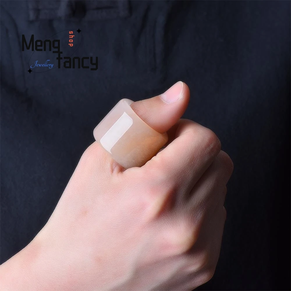 Natural Golden Silk Jade Wrench Men's Ring Simple Exquisite Best Selling Fashion Luxury Fine Jewelry Holiday Gift Handicraft