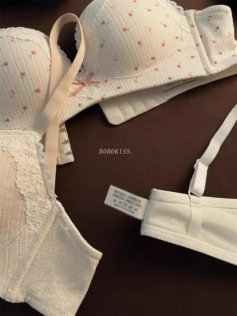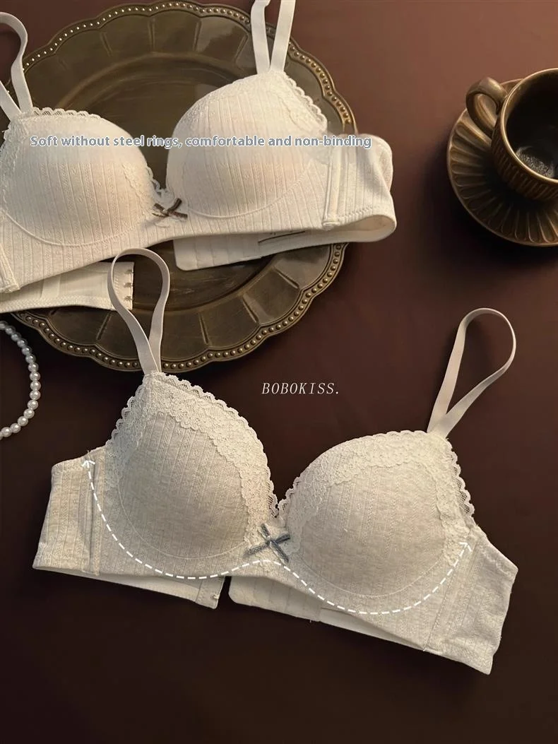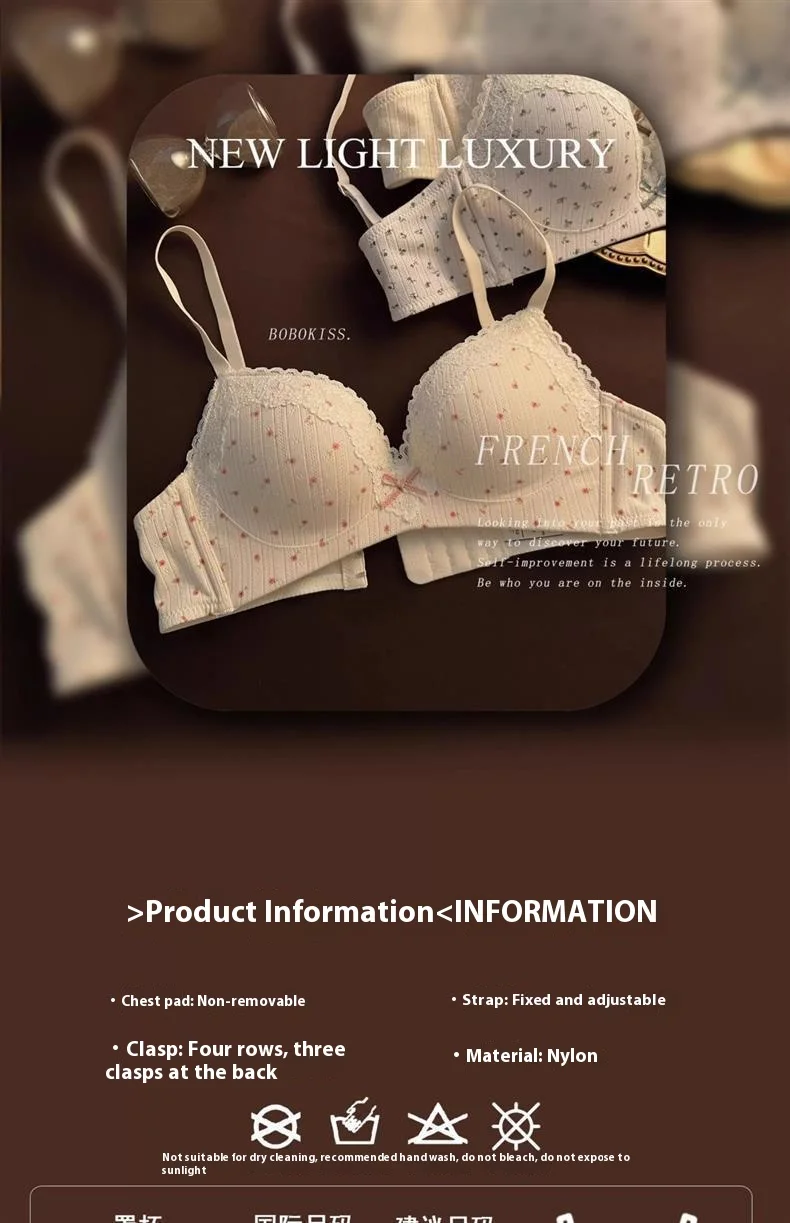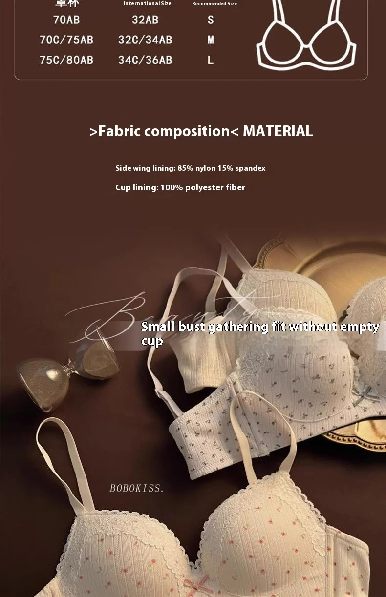 Lace Edge Sexy Lingerie Women's Small Breasts Gather No Wire Anti-Sag Bra Set