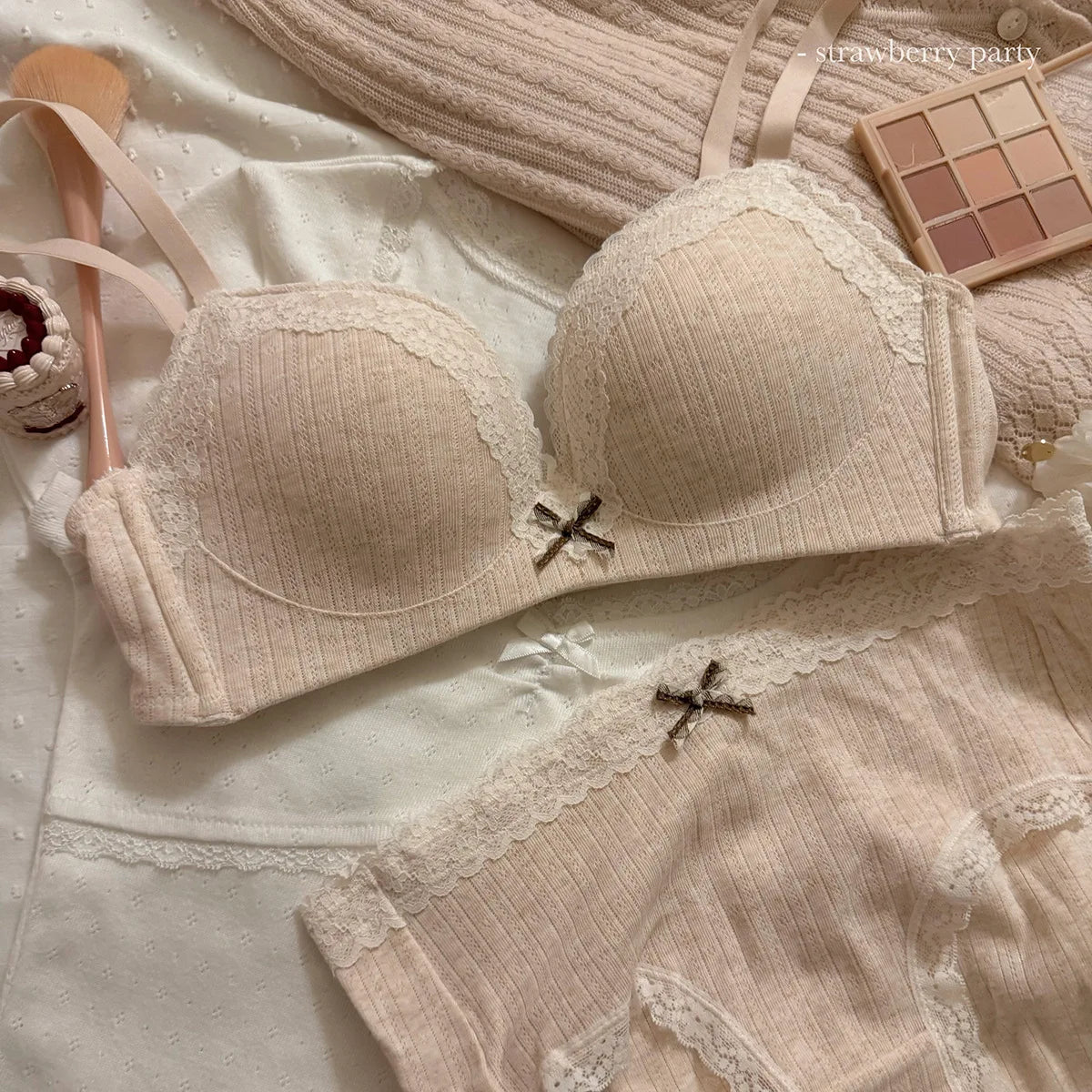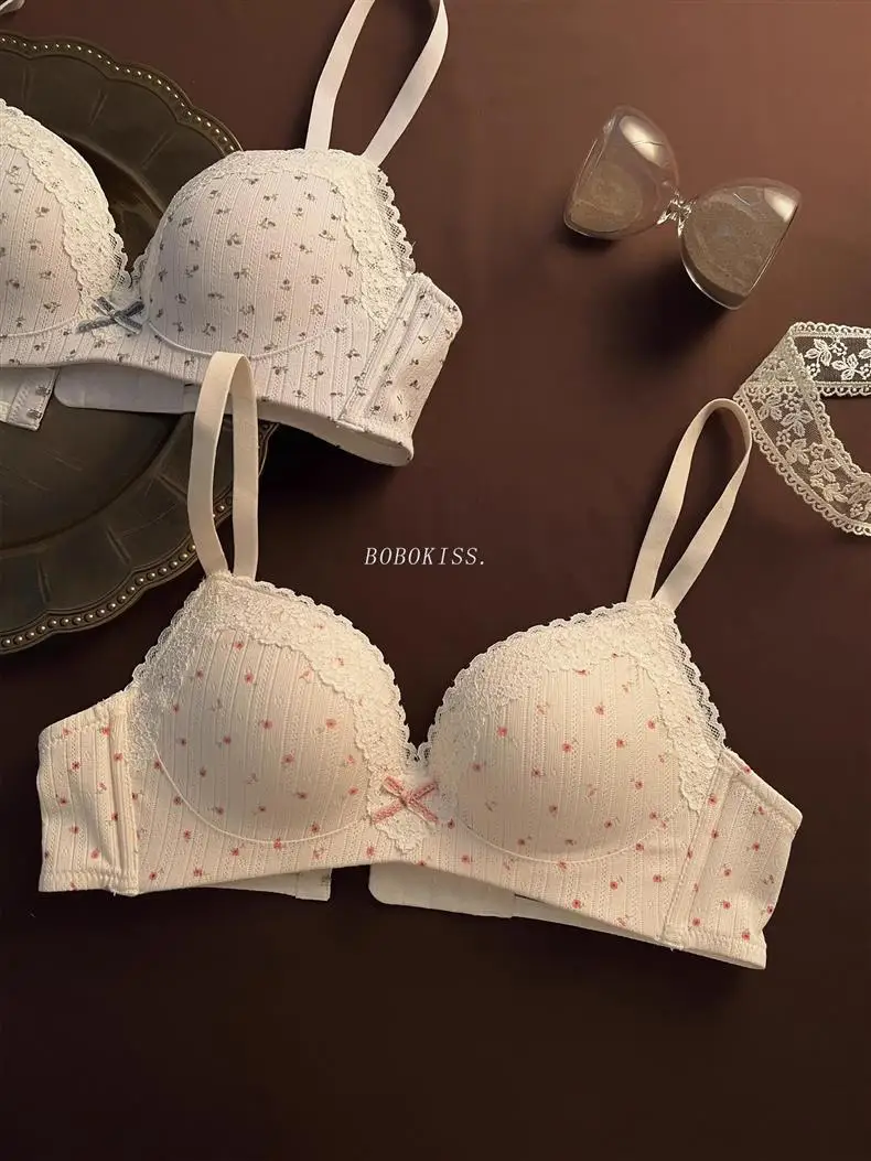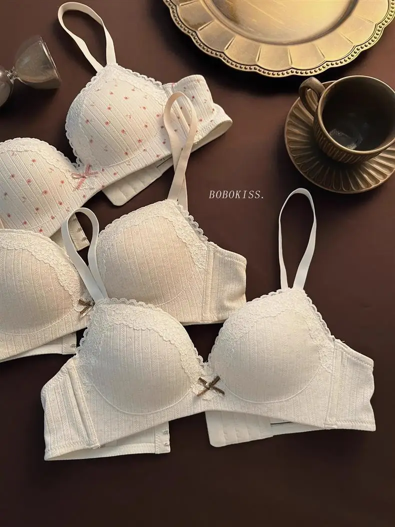 Lace Edge Sexy Lingerie Women's Small Breasts Gather No Wire Anti-Sag Bra Set