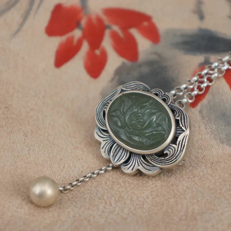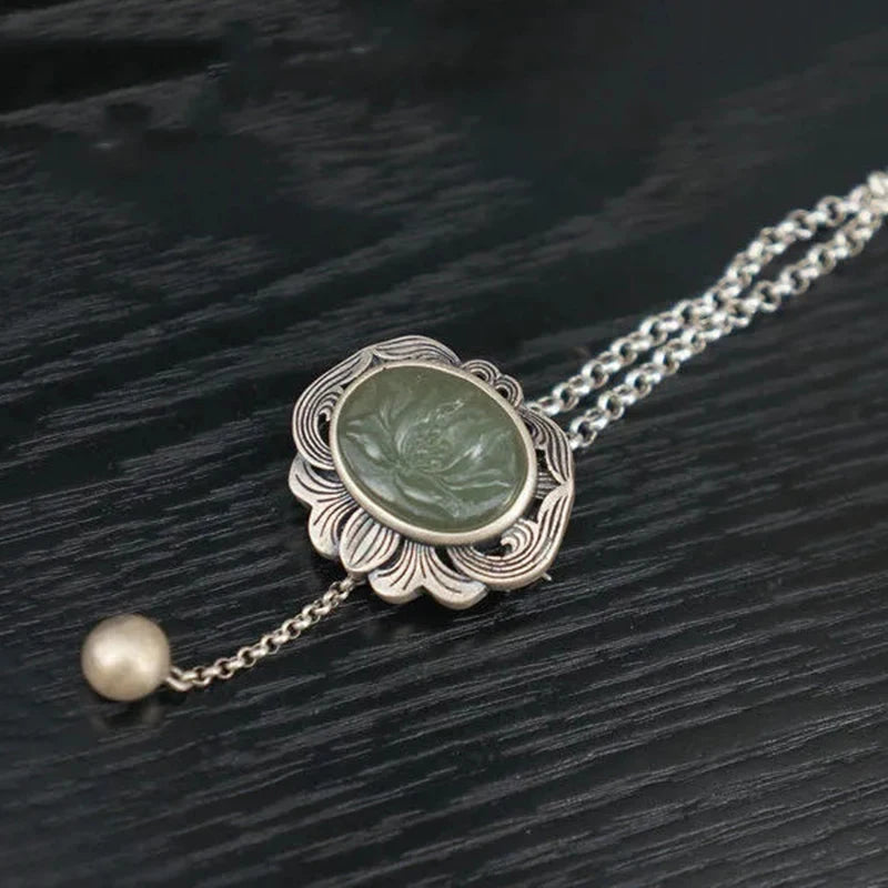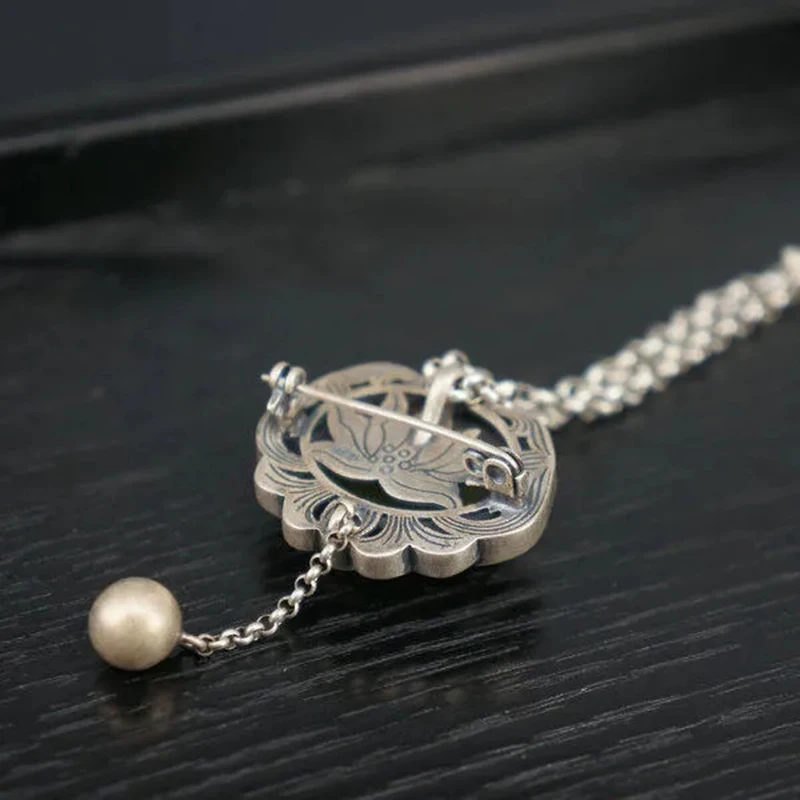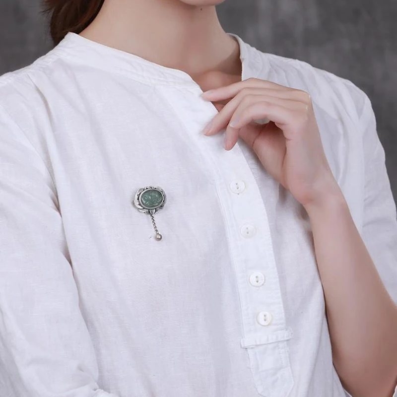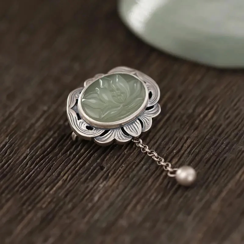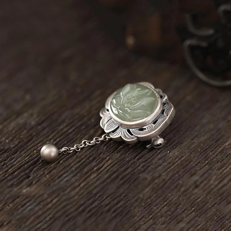 Original designer craftsmanship natural Hetian jasper pendant brooch Chinese style retro unique charm brand silver jewelry