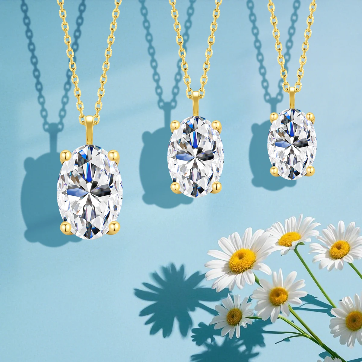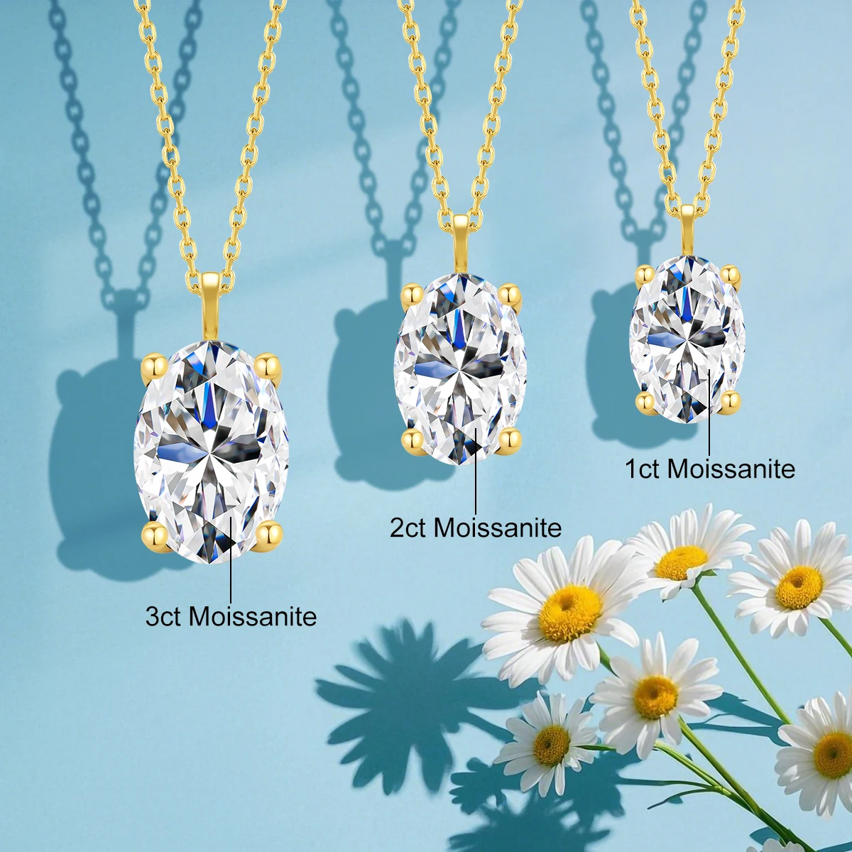 Oval Cut Moissanite Diamond Pendant 14K Gold for Women 2CT 3CT D VVS1 100% Au585 Necklaces for Anniversary Gifts Classic Jewelry