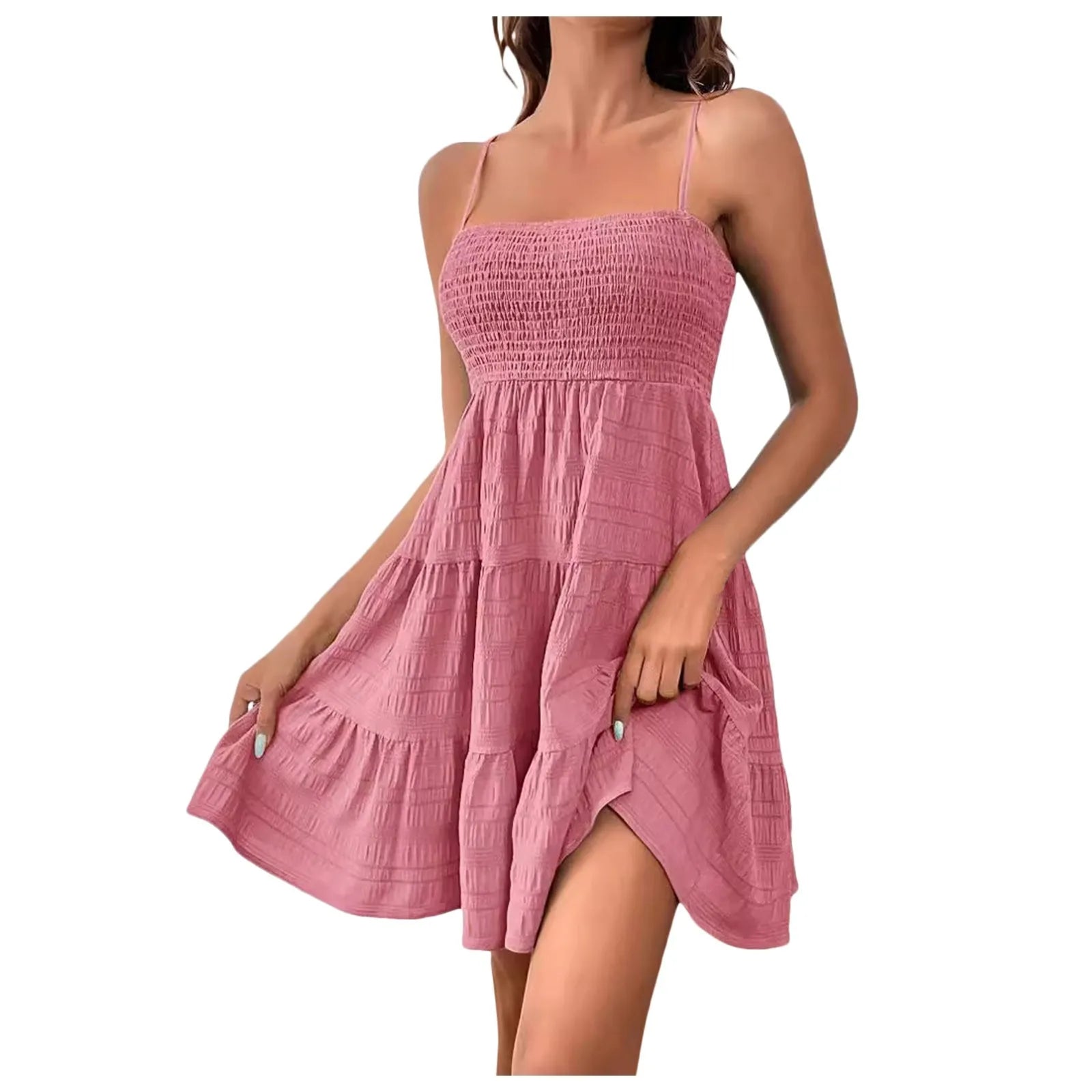 Party Dresses Short Dress Solid Ruffle Hem Short Dress Sleeveless Summer Mini Sexy Dress Dresses For Women 2024 Plus Size