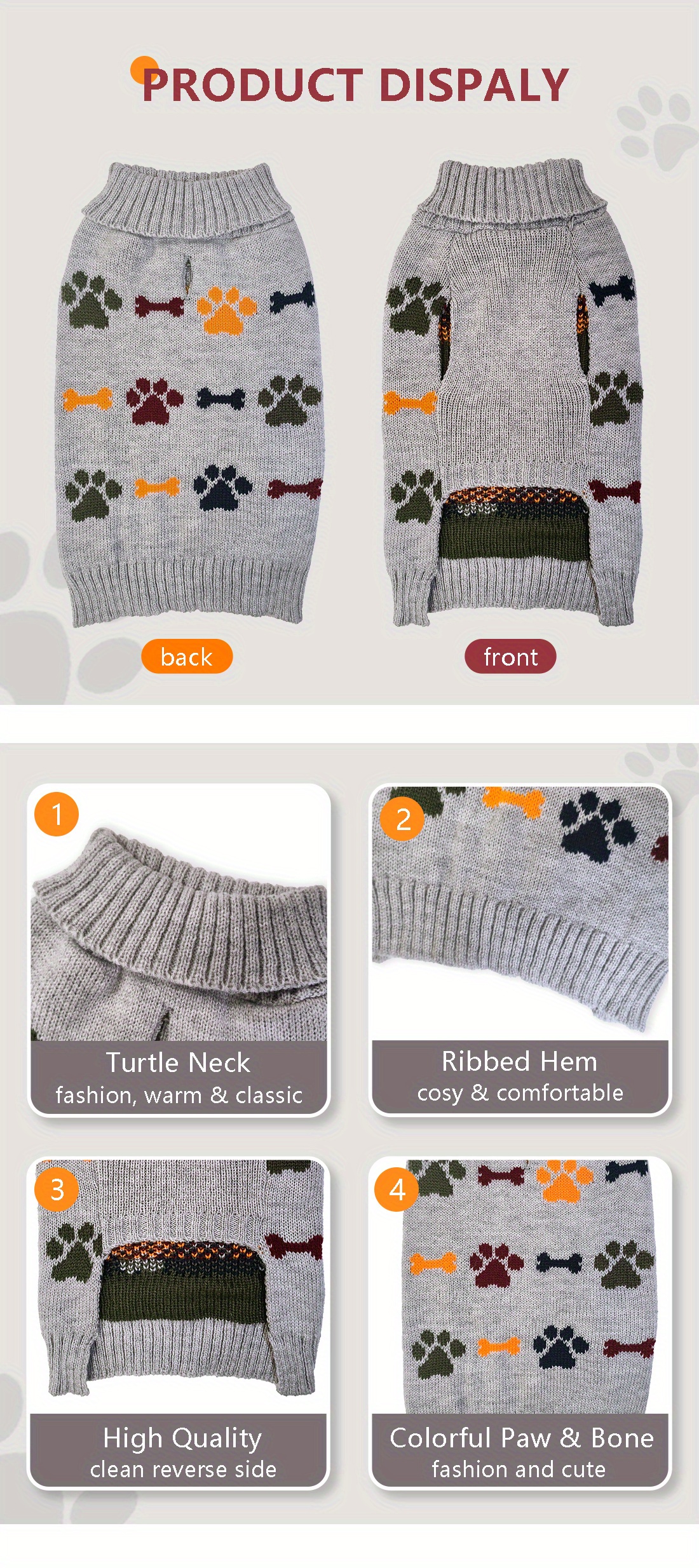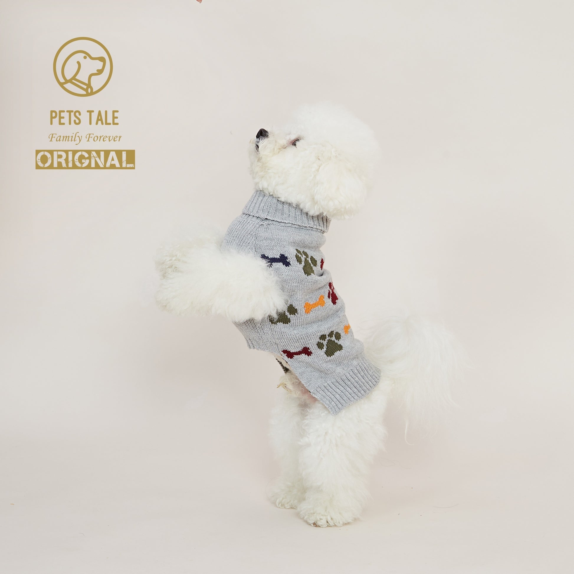 PETS TALE Premium Dog Sweater - Cozy Knit Pullover, Bone & Paw Print, Machine Washable for Small to Large Breeds