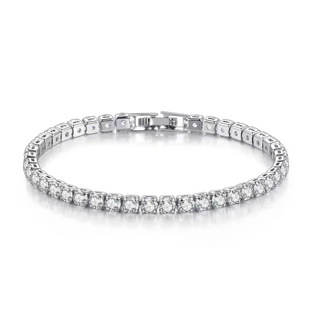 S925 Sterling Silver Bracelet Zirconia Tennis Ball Women Fashion Simple Engagement Wedding Charm Jewelry 4mm 16-20cm