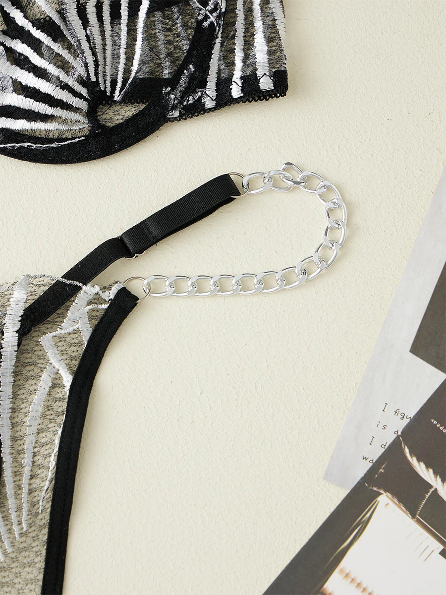 Women's Erotic Naughty Lingerie Sets Metal Chain Shoulder Strap Lace Bra and ThongSize (cm)