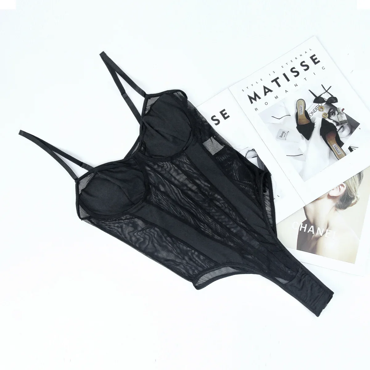 Sexy Bodysuit Lingerie Tight Fitting Women Deep V-neck Shaping Adjustable Shoulder Straps