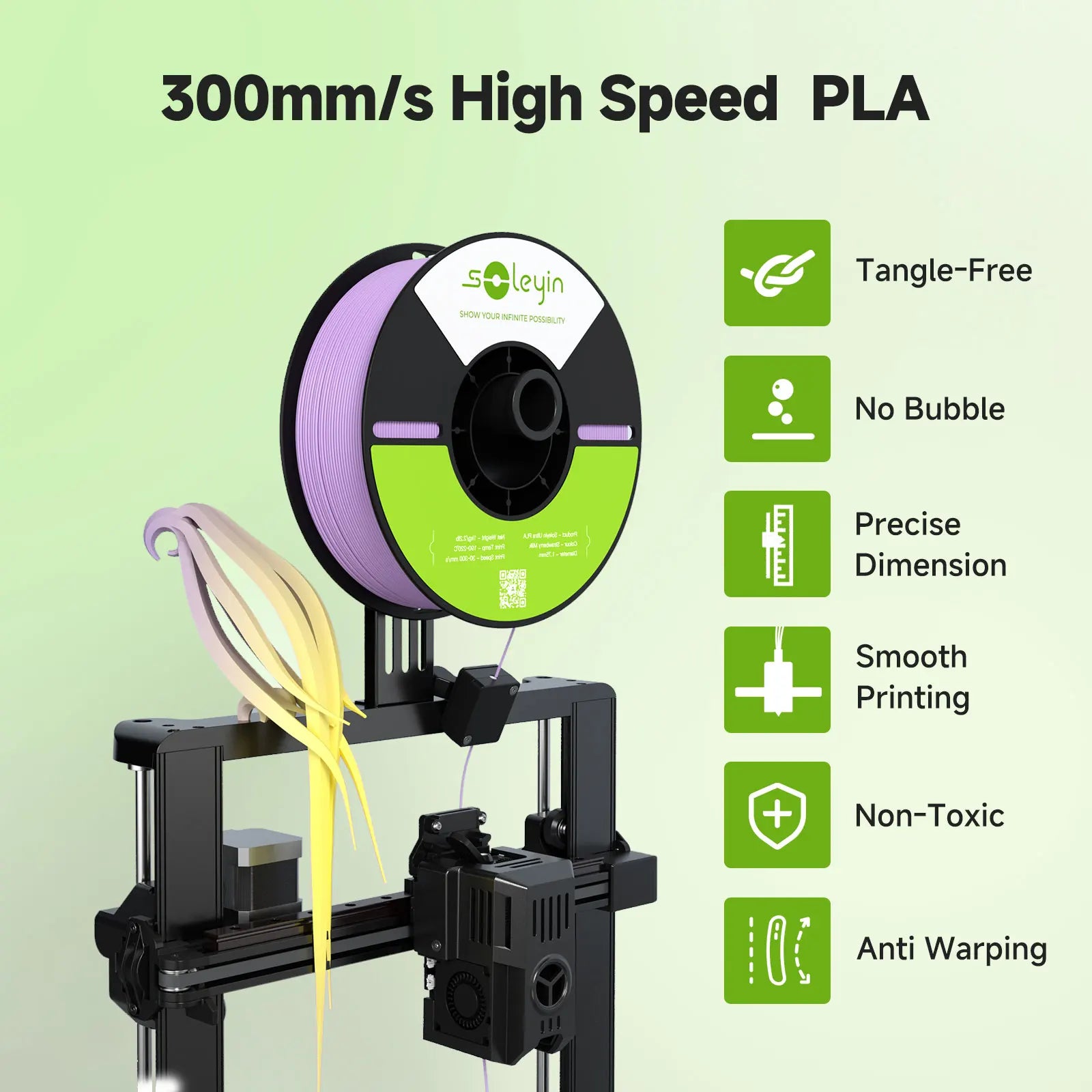 Das 1,75-mm-Filament für den 3D-Drucker von Soleyin kann mit einer Geschwindigkeit von bis zu 300 mm drucken, was die Kreativität beschleunigt und ein schnelles und stabiles Druckerlebnis ermöglicht. Die Geschwindigkeit wurde bei gleichbleibender Druckqualität erheblich verbessert, wodurch im Vergleich zu gewöhnlichem PLA 73 % der Zeit gespart werden.