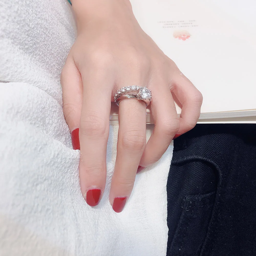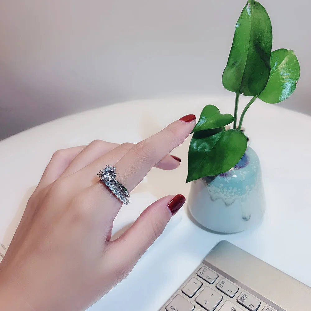 Solitaire 1ct Diamond Ring sets Real S925 Sterling Silver Jewelry Engagement Wedding band Rings for Women Bridal Party accessory