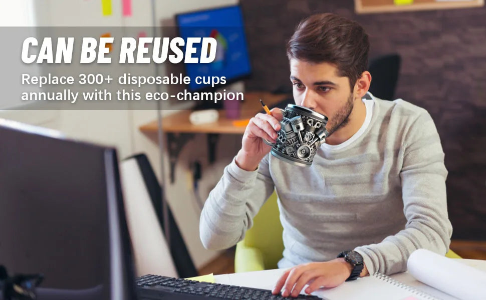 Eco-Friendly & Reusable Crafted as a sustainable alternative to disposable cups, this stainless steel mug is perfect for reducing waste while enjoying your favorite beverages during car shows, road trips, or garage sessions