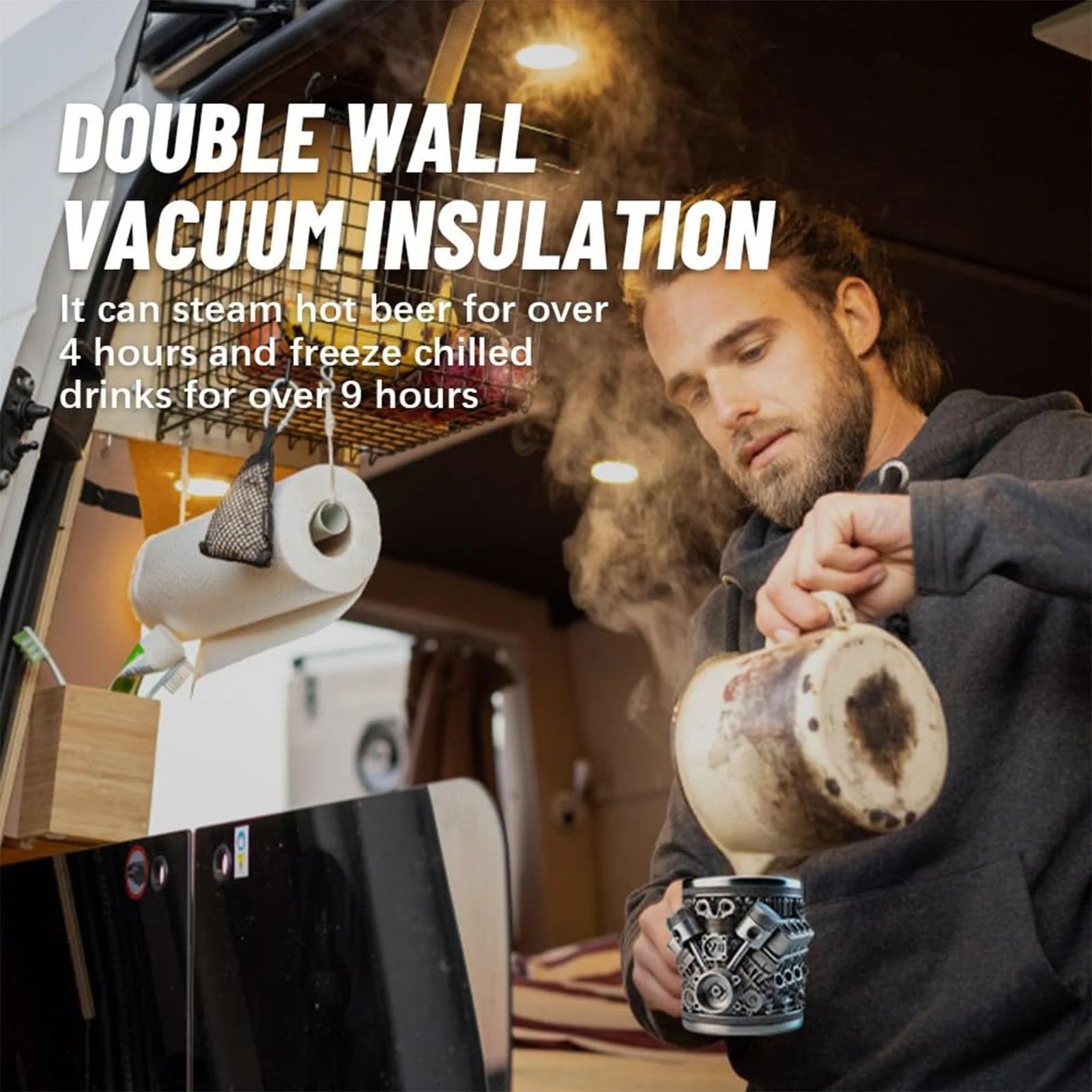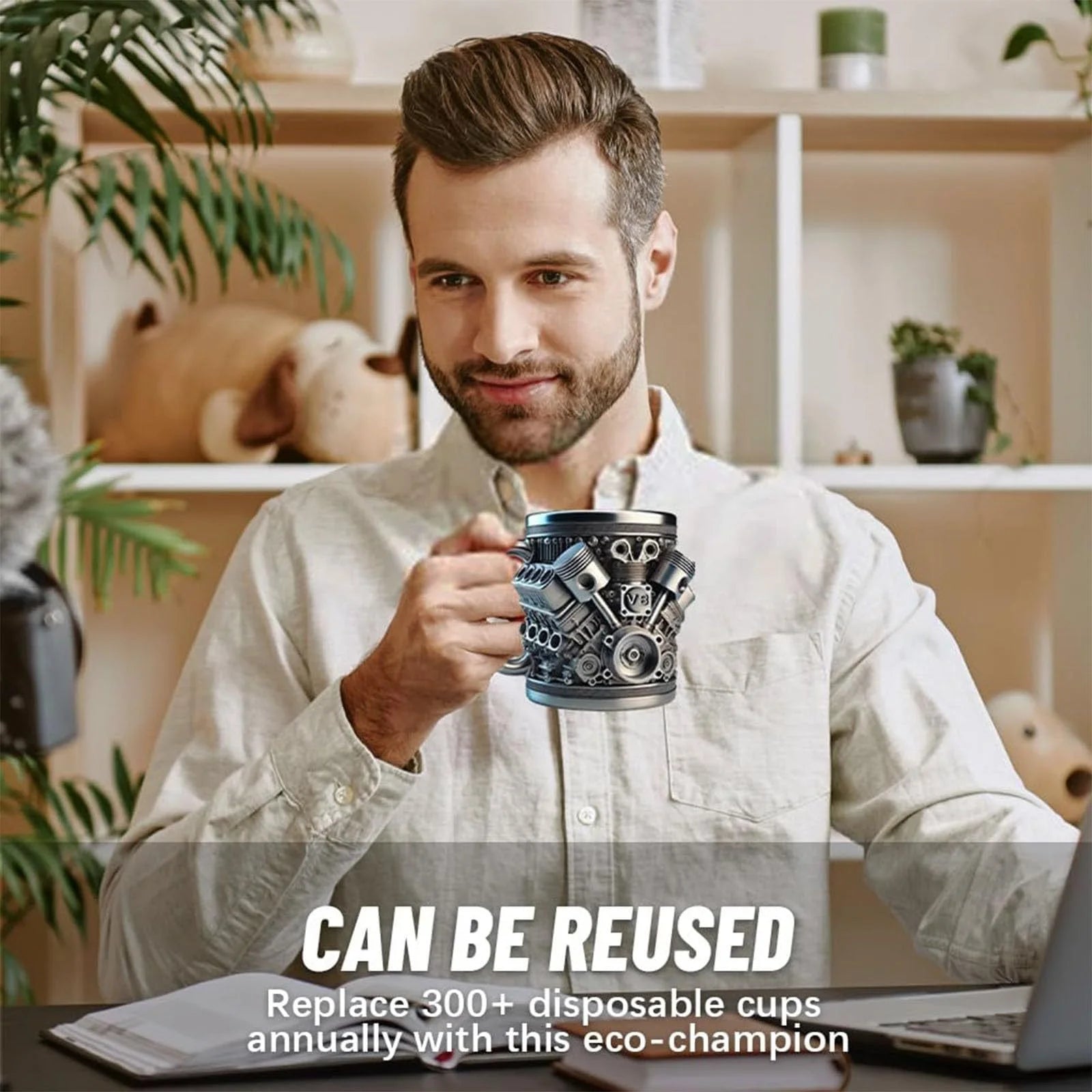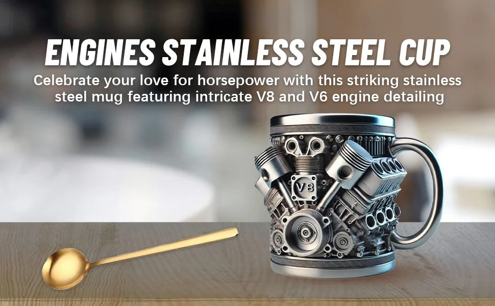 Aggressive Engine Design: With this "V" Engines 3D stainless steel cup, let you feel the charm of speed at any time!Crafted for car enthusiasts, this sleek, stainless steel cup showcases a bold design inspired by iconic V8 and V6 engines