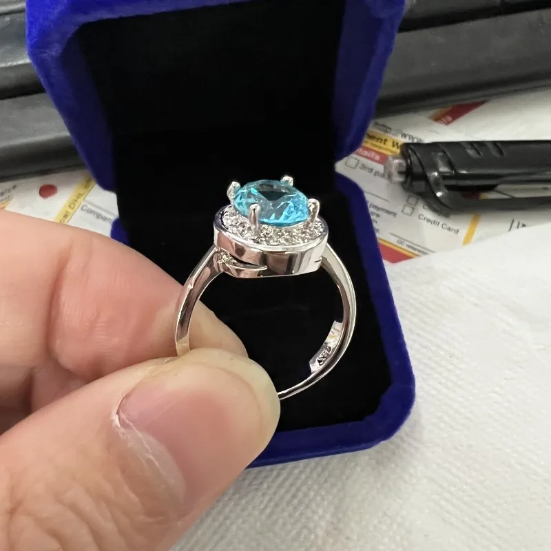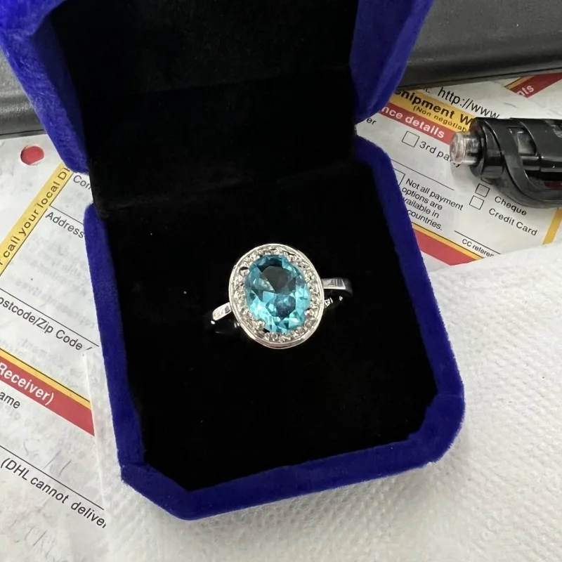 Valuable Lab Aquamarine Diamond Promise Ring 10KT White Gold Engagement Wedding Band Rings for Women Bridal Fine Jewelry