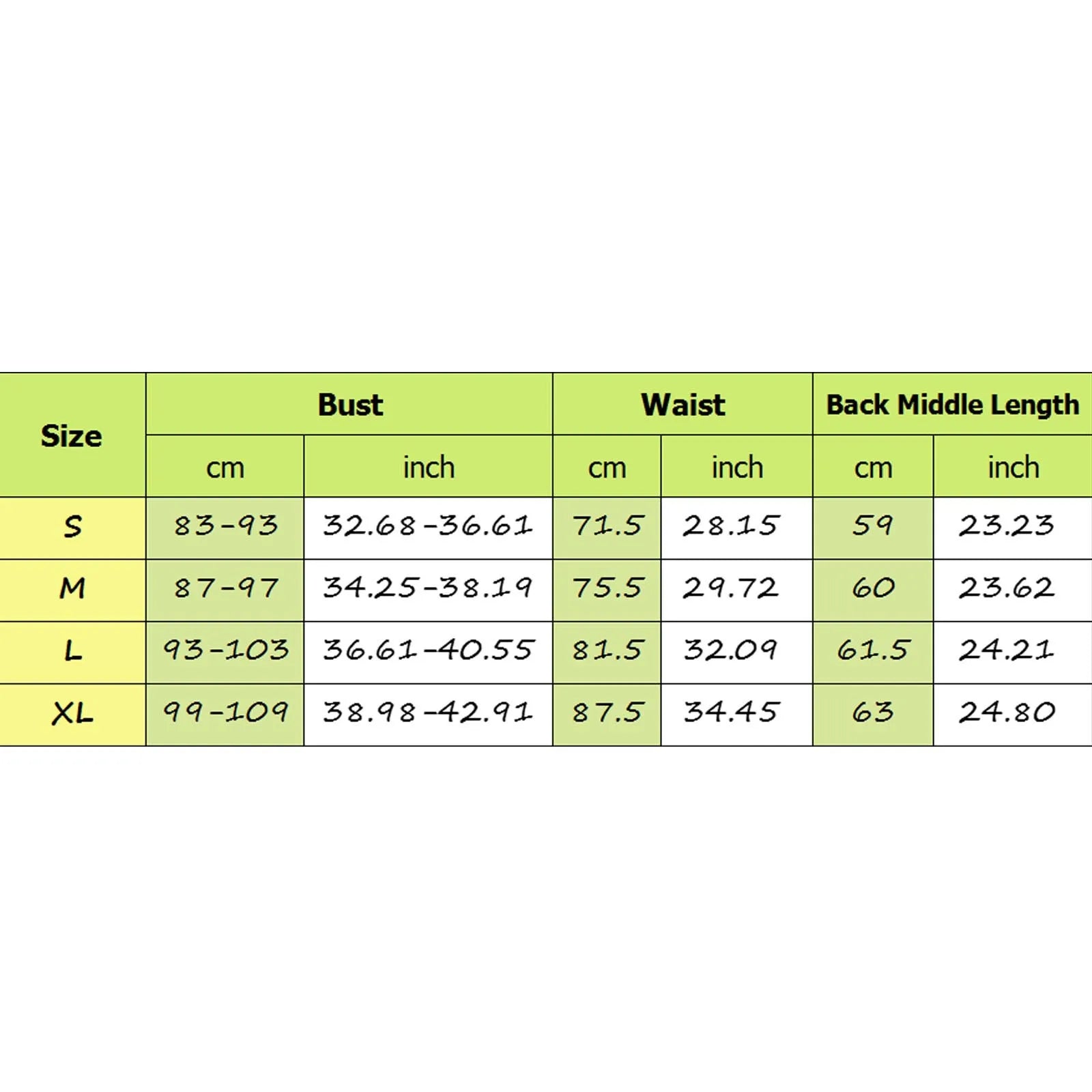 | Size:XL | bust:99-109cm/38.98-42.91'' | Waist:87.5cm/34.45'' | Length:63cm/24.80'' |