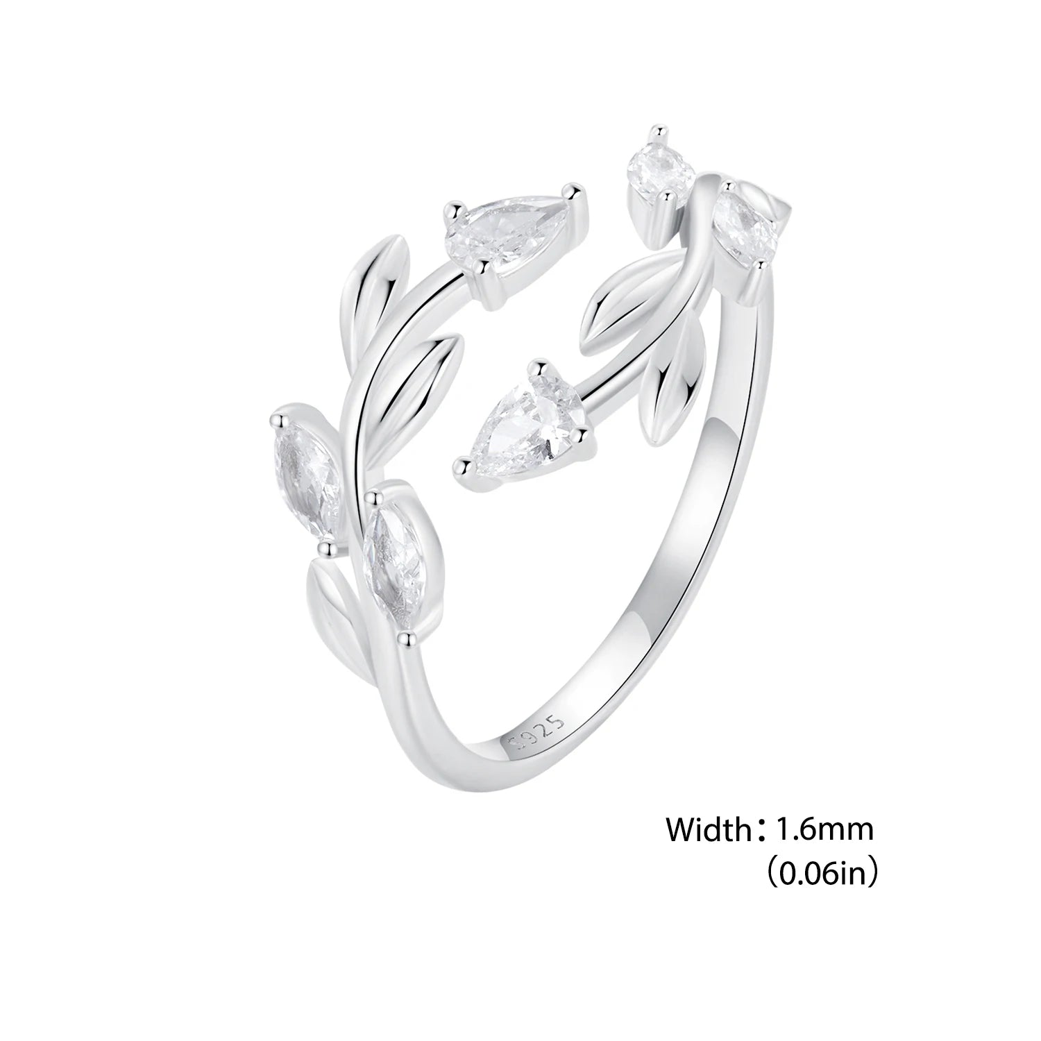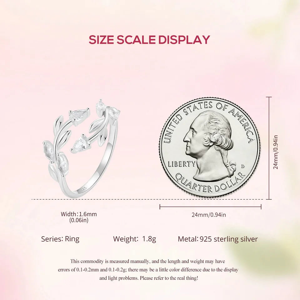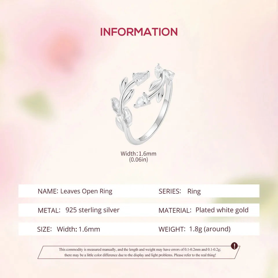 WOSTU 925 Sterling Silver Leaves Open Ring With Zircon For Women's Dating Daily Parties Fine Jewelry Gifts Dainty Trendy Jewelry