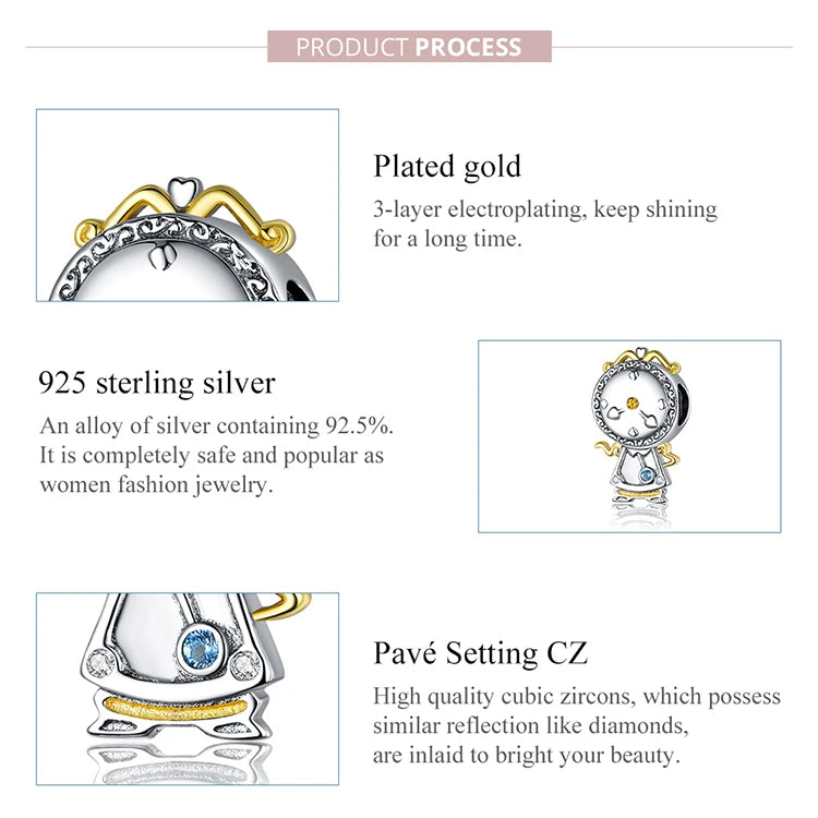 WOSTU Hot Sale 925 Sterling Silver Colock Pendant Magic Can Dangle Charm fit Original Bracelet & Necklace Fine Jewelry Gift